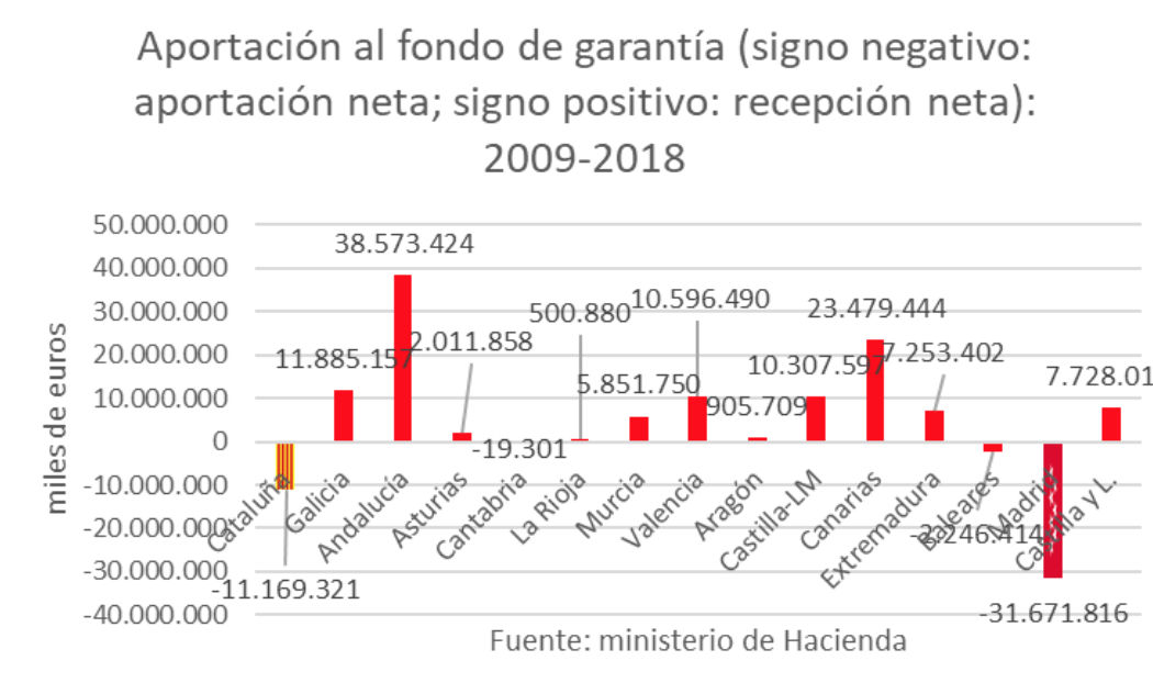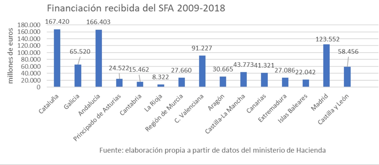 Eso ha hecho que Cataluña sea la que más fondos ha recibido del actual SFA desde su puesta en marcha en 2009 hasta el último año liquidado definitivamente (2018). De esta forma, Cataluña ha sido, junto con Andalucía, la que más ha recibido del SFA, con 167.420 millones de euros, que son más de 43.868,59 millones de euros más que los recibidos por Madrid, que tiene el mismo tamaño económico que Cataluña y donde se genera la mayor recaudación de IRPF. Es decir, Cataluña se ha llevado el 18,33% de los fondos, casi cinco puntos más que Madrid, cuando tienen el mismo peso económico.