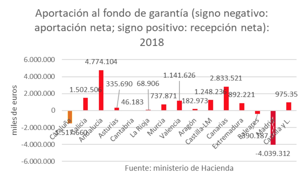 Madrid es, de largo, la que más aporta al Fondo de Garantía de los Servicios Públicos Esenciales, para que esas regiones con menor capacidad económica puedan prestar los servicios, sanitarios, educativos o sociales. De esa manera, sólo en el último año, Madrid ha aportado al Fondo de Garantía de los Servicios Públicos Fundamentales (FGSPF) 4.039 millones de euros, frente a los 1.517 de Cataluña o los 390 millones de Baleares. El resto, de manear neta, recibe fondos.
