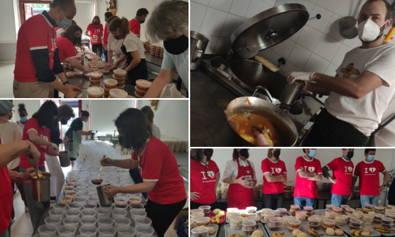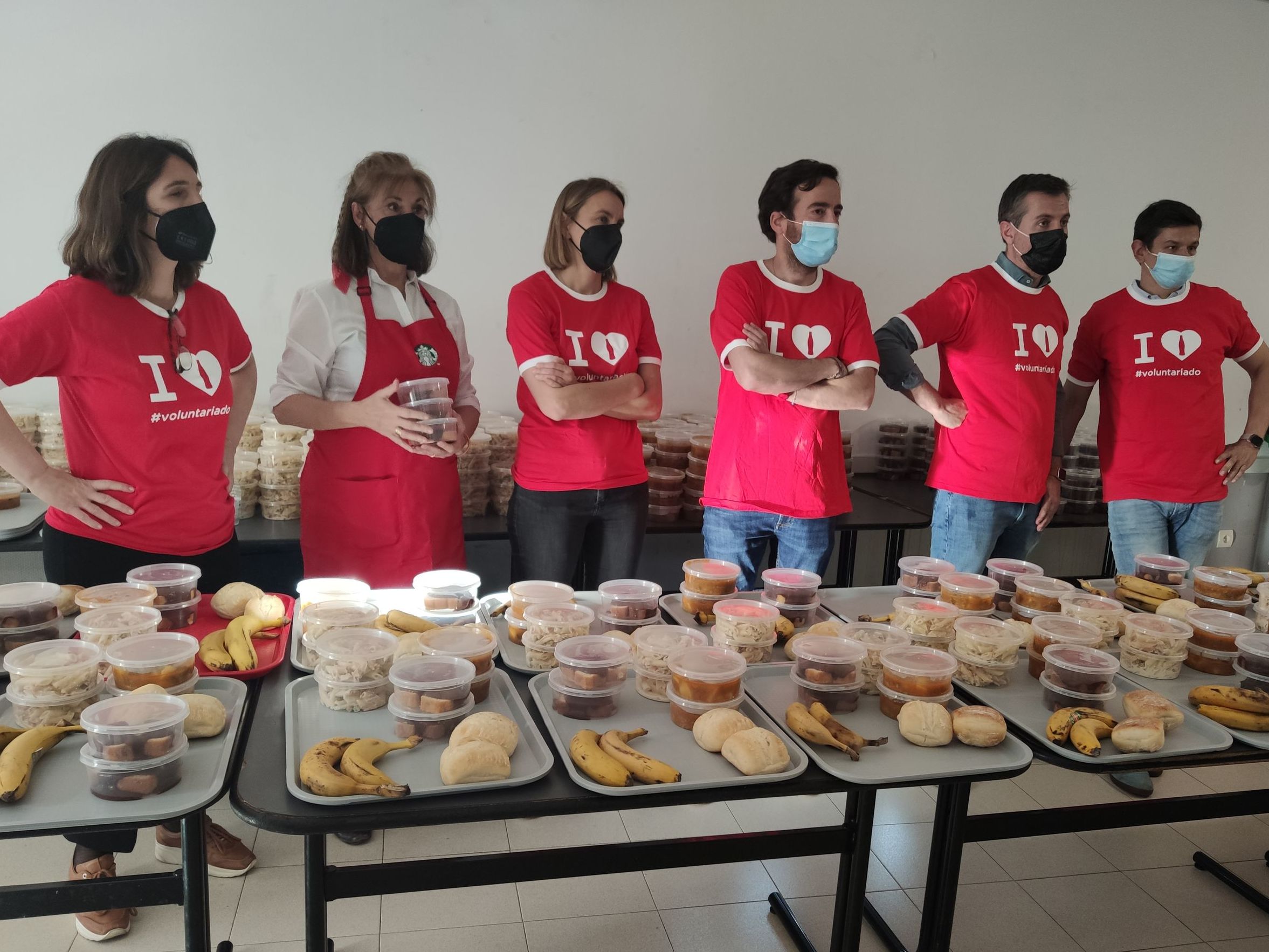 Con cada una menú completo, va una sonrisa de ida y vuelta. El acto se convierte en una fiesta, que prepara durante la tarde un grupo de voluntarios. Entre ellos, unos trabajadores de Coca cola como Carmen, Eugenio e Iñaki que se han unido al proyecto gracias a un convenio de colaboración de Confía con su empresa, pero que -a la hora de colaborar- son uno más.