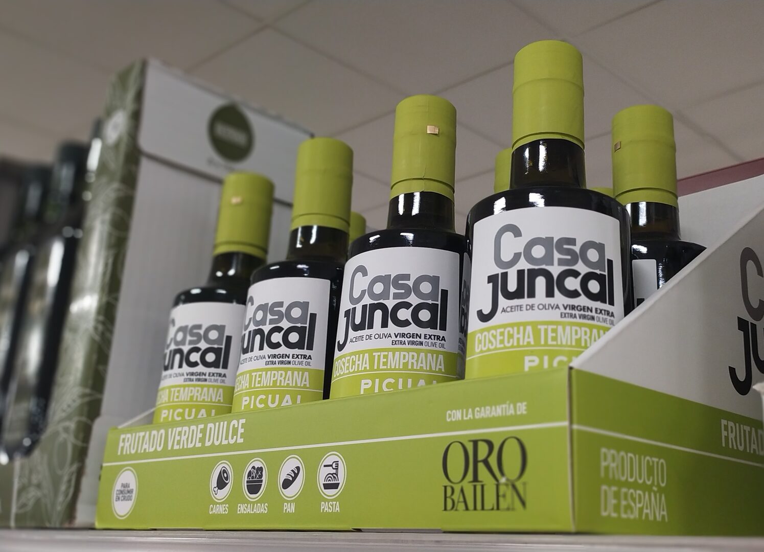 El Aceite de Oliva Virgen Extra Casa Juncal Cosecha Temprana de Mercadona, producido por el Proveedor Totaler Aceites Oro Bailén Galgón 99 SLU, ha obtenido dos medallas de Oro a la calidad de su producto en dos certámenes distintos, ambos de reconocido prestigio internacional, como son el New York International Olive Oil Competition (NYIOOC), y el London International Olive Oil Competitions (London IOOC).
