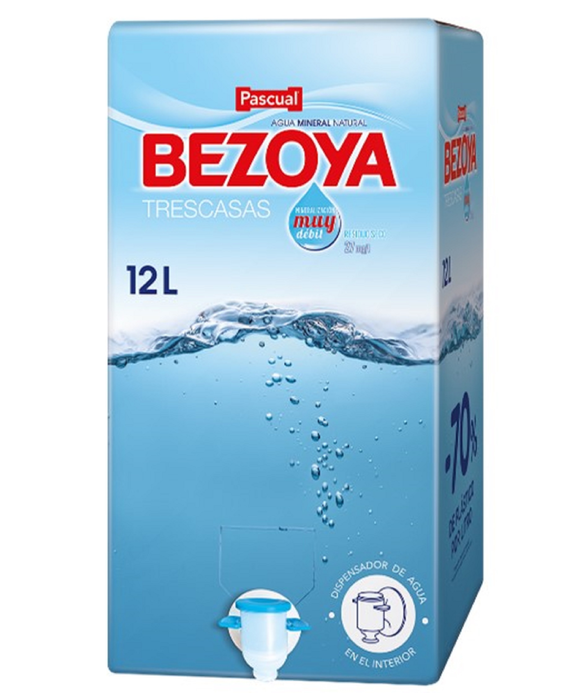 La piedra angular de estos dos nuevos modelos de negocio es su formato en caja 100% reciclable. Se trata de una innovación disruptiva en la categoría de aguas, una fuente de agua de 12 litros con todas las comodidades para el transporte, que además incorpora un grifo dispensador y permite a la marca utilizar un 70% menos de plástico por cada litro de agua en comparación con la media del mercado. También cuenta con un asa en la parte superior para una mayor facilidad de transporte y ocupa un 27% menos de espacio en comparación con el equivalente en formatos de 1,5 litros.
