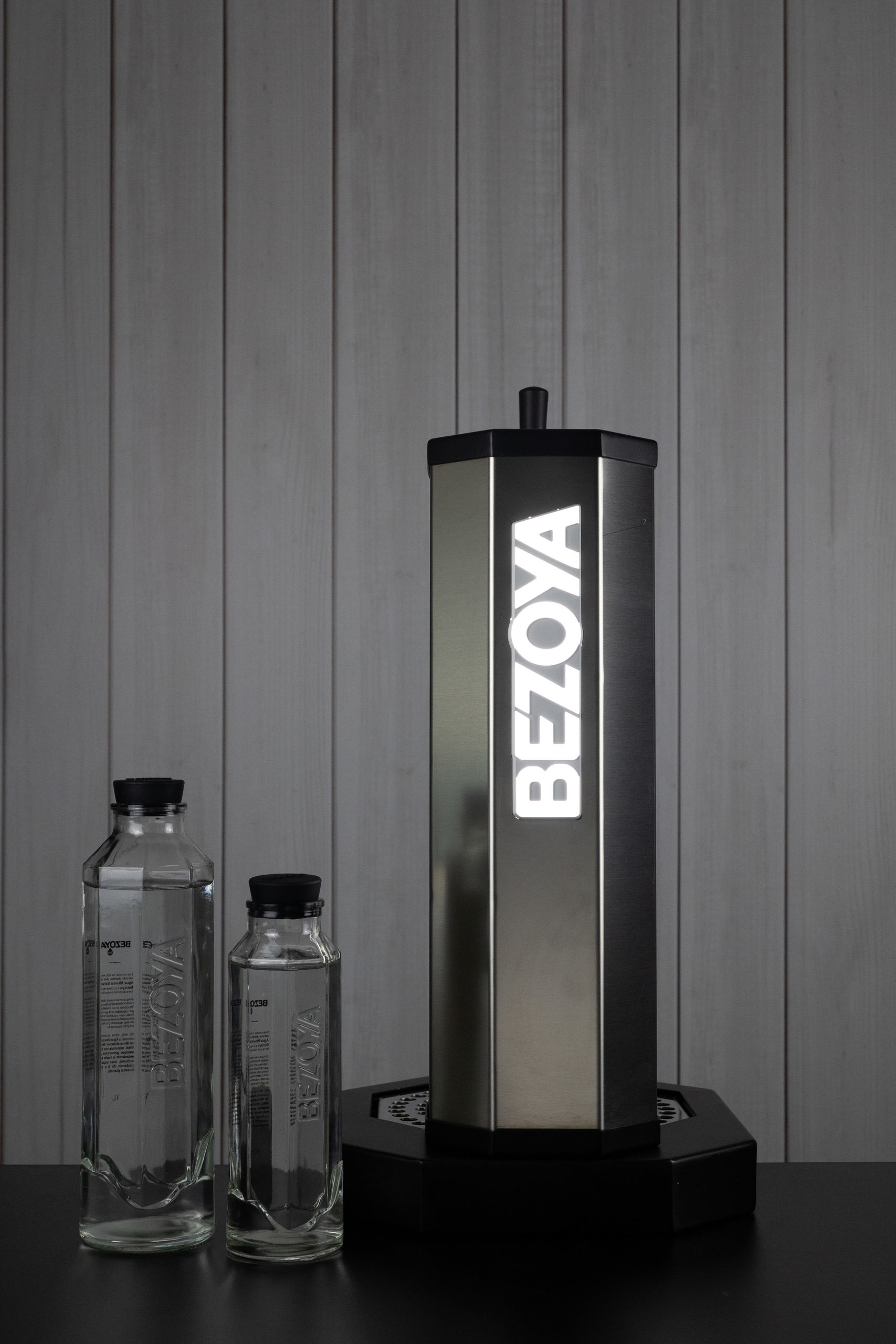 Con este lanzamiento, que ha comenzado con un proyecto piloto en establecimientos de Madrid, Barcelona y Bilbao, Bezoya presenta dos modelos de surtidor: uno con forma de columna octogonal y otro con forma de botella. El nuevo formato de Bezoya incorpora un sistema de doble grifo, que permite dispensar el agua directamente en el local, a la vista del cliente, garantizando en todo momento su pureza original. Además, la marca acompaña sus nuevos grifos con unas frascas de 0,5L o 1L para realizar el servicio a mesa, cuidando la estética del producto y, como señala el director del Negocio de Aguas de Pascual, "ofreciendo en los envases una información completa y veraz a todos los consumidores, como muestra de nuestra transparencia y compromiso real por ofrecer los productos de la más alta calidad".