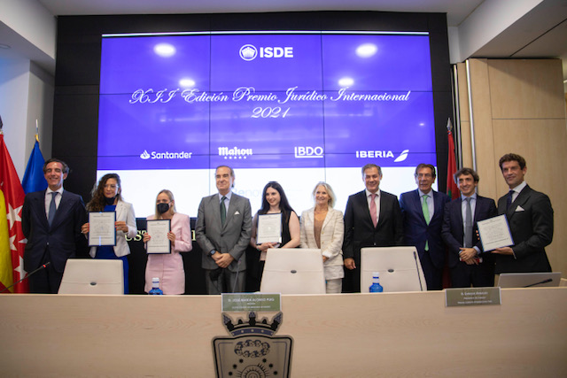 Hoy ha tenido lugar la entrega de premios de la XII Edición del Premio Jurídico Internacional ISDE 2021 en el salón de actos del Ilustre Colegio de Abogados de Madrid.