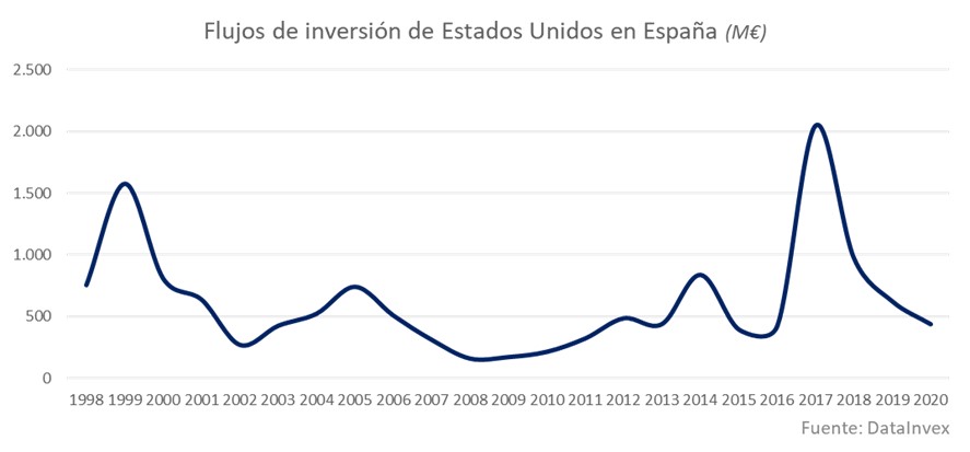 Y es como consecuencia de los lazos de cooperación y del respeto mutuo como llegan los buenos resultados a todos. Observemos la evolución de la inversión extranjera de agentes norteamericanos en España.