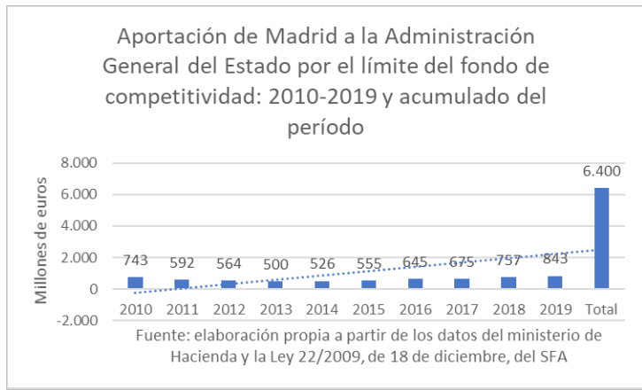 Debido a una de las múltiples trampas del sistema, la Comunidad de Madrid deja de recibir cientos de millones de euros al año por el tope que opera en el fondo de competitividad, límite establecido pensando en Madrid en la redacción de la ley, para que la perjudicase sin que ello afectase a Cataluña. Durante años, ha afectado sólo a Madrid y, en algunos ejercicios, mínimamente a Baleares.