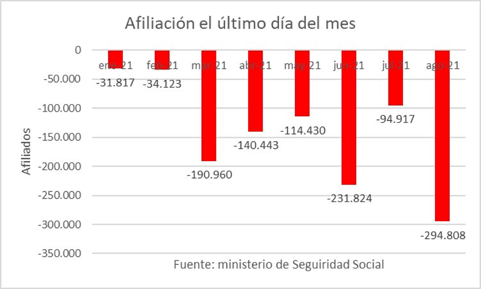 Además, el último día del mes se perdieron 294.808 afiliados, la mayor pérdida del año en el último día del mes.