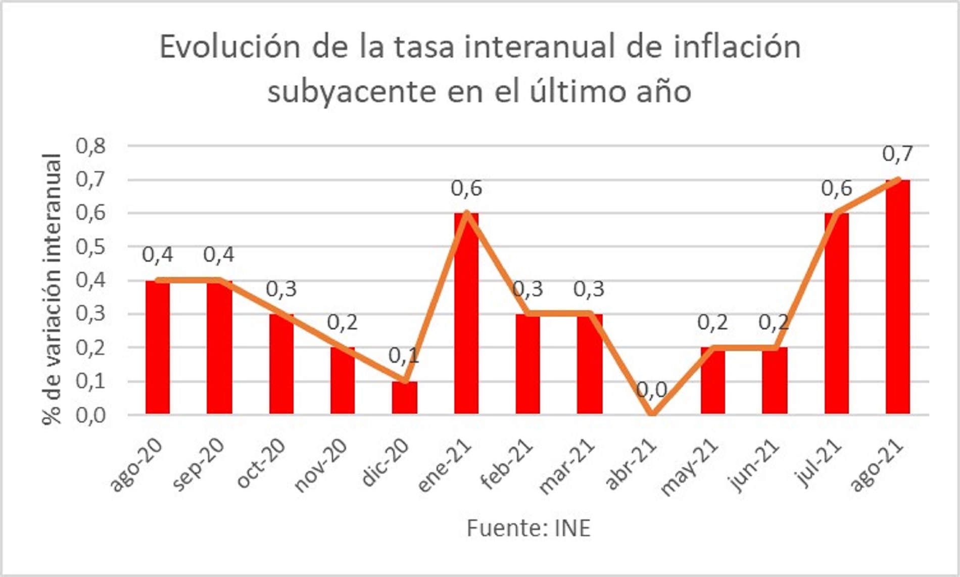 Sin duda, como decimos, los precios de la energía son responsables de una parte importante del ascenso de los precios, pero esta subida se está dando ya de manera generalizada en todos los productos, como muestra la subida de la inflación subyacente, que excluye los alimentos no elaborados y el componente energético, que se incrementa una décima en agosto, hasta el 0,7%.