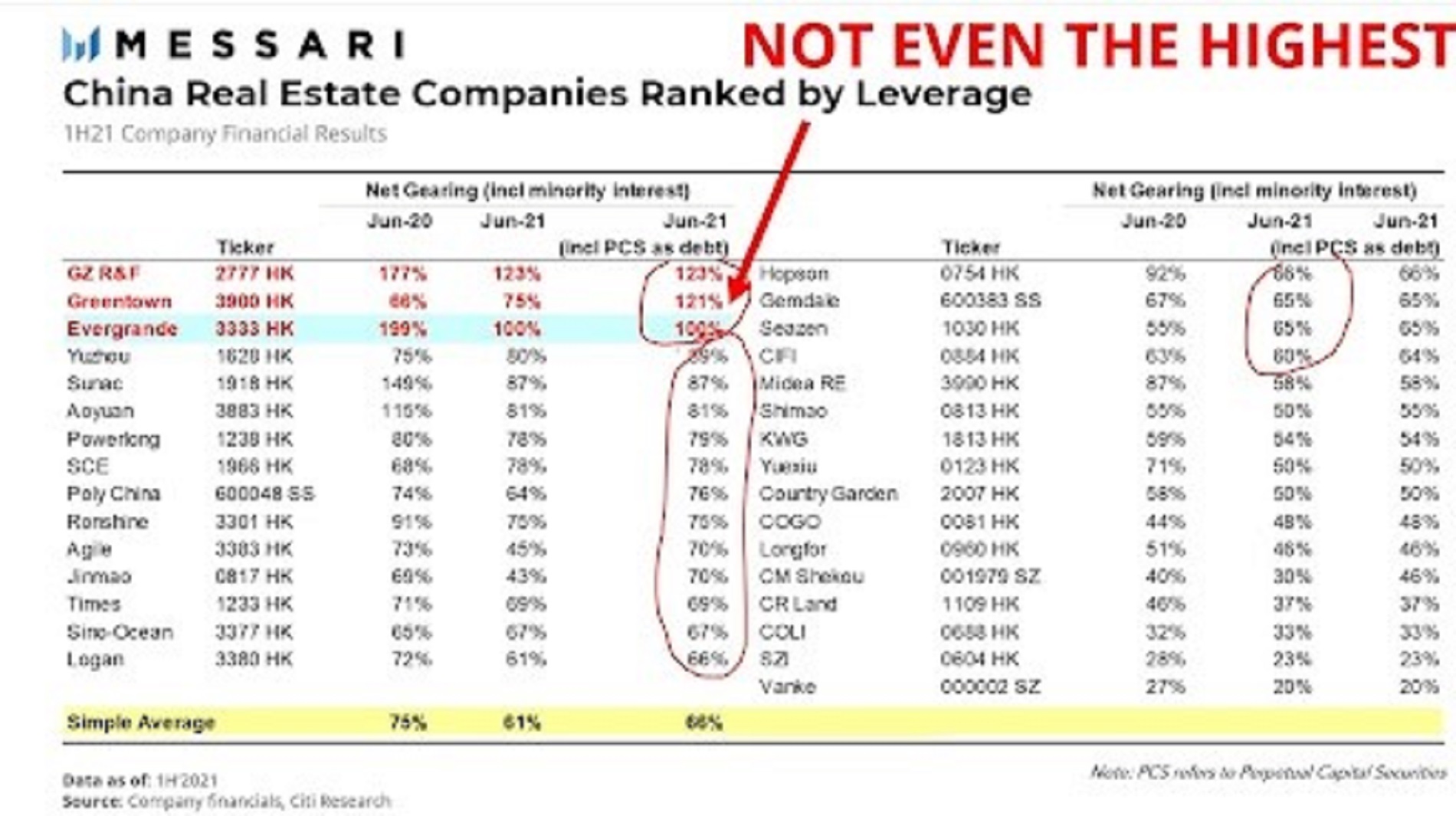 Por lo tanto, el caso Evergrande podría ser tan solo el principio, y aún está por ver el efecto cadena. Para los que creen que lo peor ha pasado, un dato: Evergrande no es la empresa más endeudada del sector inmobiliario chino. Su grado de apalancamiento (deudas menos activos liquidables como porcentaje de fondos propios) en junio de 2021 era del 100%, mientras que hay otras empresas que superan el 120%.