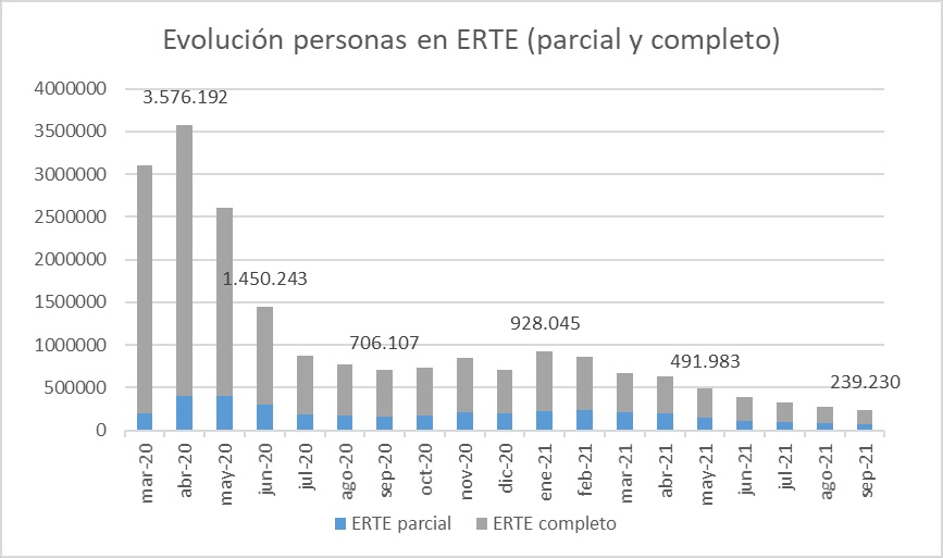 Hay que recordar que el dato de paro de septiembre lleva aparejado un importante efecto maquillaje, ya que no incluye a los trabajadores que se encuentran en un ERTE y que están en sus casas sin trabajar. Así, al finalizar septiembre, todavía había 239.230 personas que no contaban como parados en las estadísticas oficiales.