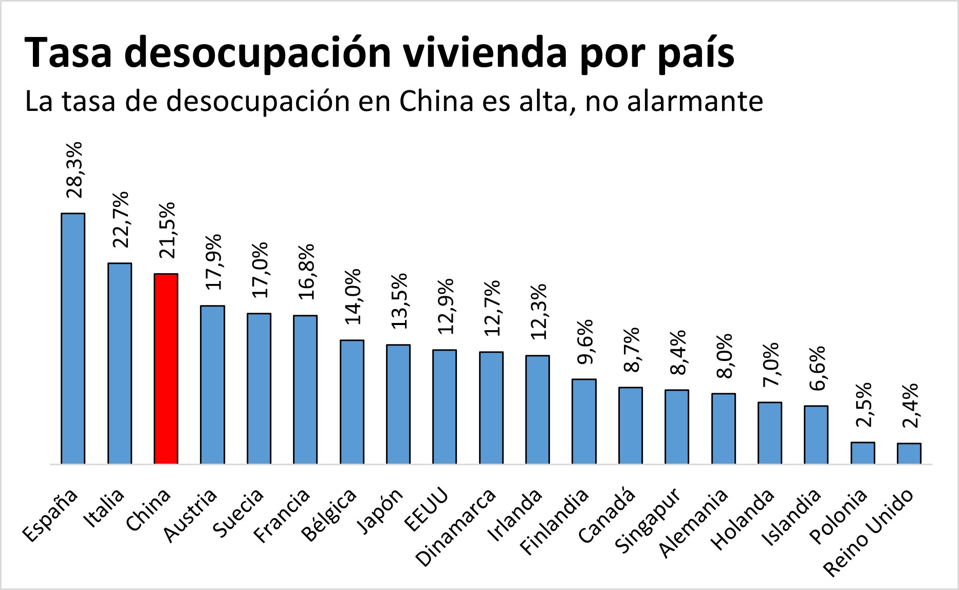 La tasa de desocupación de vivienda en China es relativamente alta cuando la comparamos con otros países, aunque en 2017 era inferior a la de España o la de Italia.