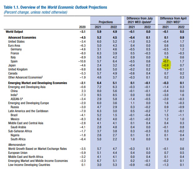 Será por ello que nuestro país ha sufrido la mayor revisión a la baja en el crecimiento estimado del PIB de toda Europa: Caída de 7 décimas en 2021 frente a una reducción de 1 décima a nivel global… y una subida de 6 décimas de la UE. Pero ya saben, en 2022 creceremos más y seremos campeones europeos.