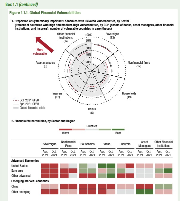 Lo que queda claro, a la luz del informe de FMI, es que el perfil de riesgo mundial es mucho mayor que el de 2008 en prácticamente todos los sectores. Además, China es la zona con mayor riesgo actualmente, seguida de la zona Euro. Estados Unidos, por su parte, tampoco está exenta de malas noticias, aunque por el momento los nubarrones se ven más lejanos por su buena evolución económica durante 2020.