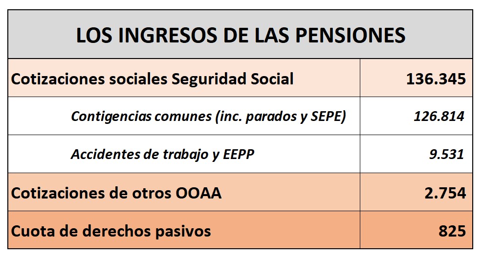 - Quedan 139.924 millones, de los que 136.345 millones son cotizaciones a la Seguridad Social (detalle aquí, página 3 y aquí, página 7).