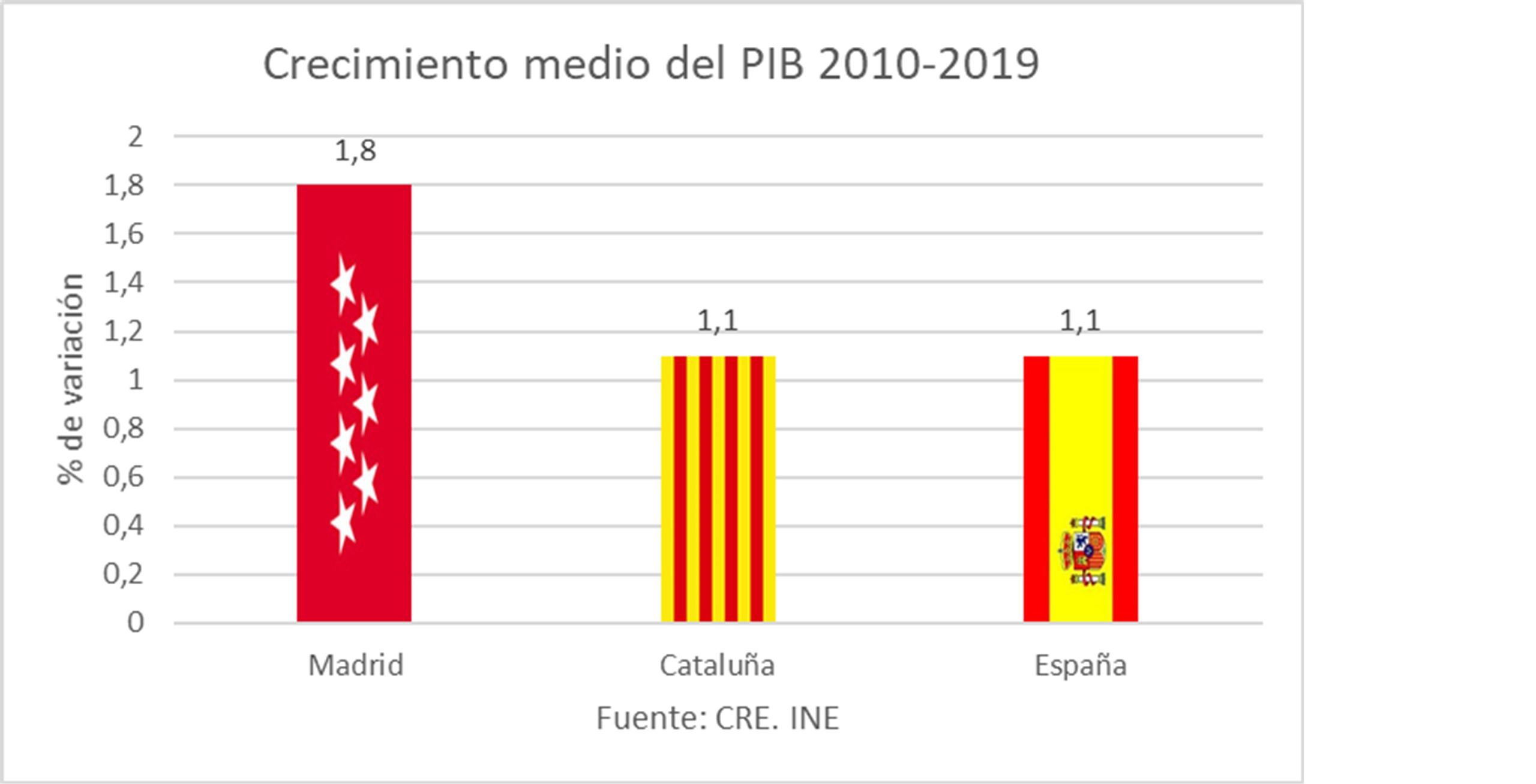 De hecho, recordemos que ya se aplicaron políticas de izquierda en Madrid, entre 1983 y 1995, y consiguieron un peor resultado. Comparando con la otra región de igual tamaño, como es Cataluña, el crecimiento económico de Madrid solía ir por debajo.
