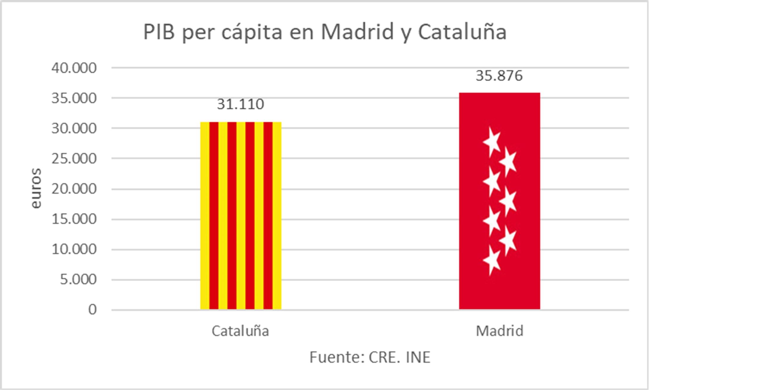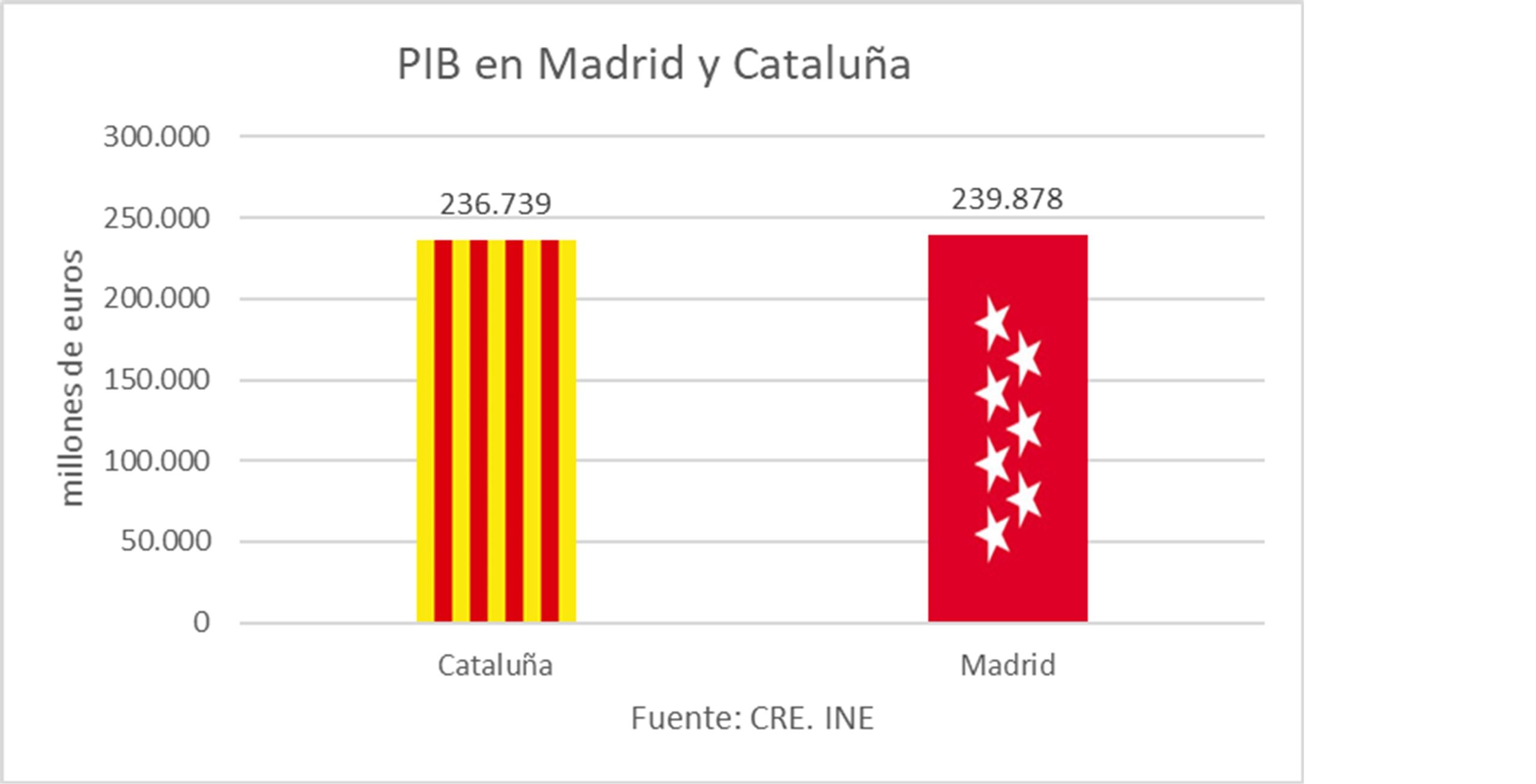 Todo ello ha hecho que Madrid se convierta no sólo en la región más próspera, sino también en la mayor economía por volumen de PIB, pese a contar con menor extensión y población que Cataluña.