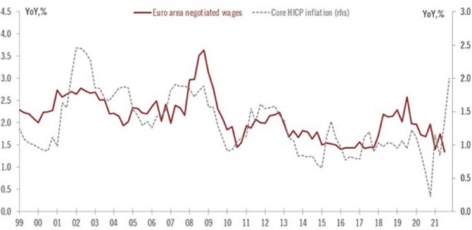 Y también es cierto que, por el momento, la negociación colectiva se está comportando de forma responsable y la evolución de los salarios en Europa no está creciendo al mismo ritmo que los precios.