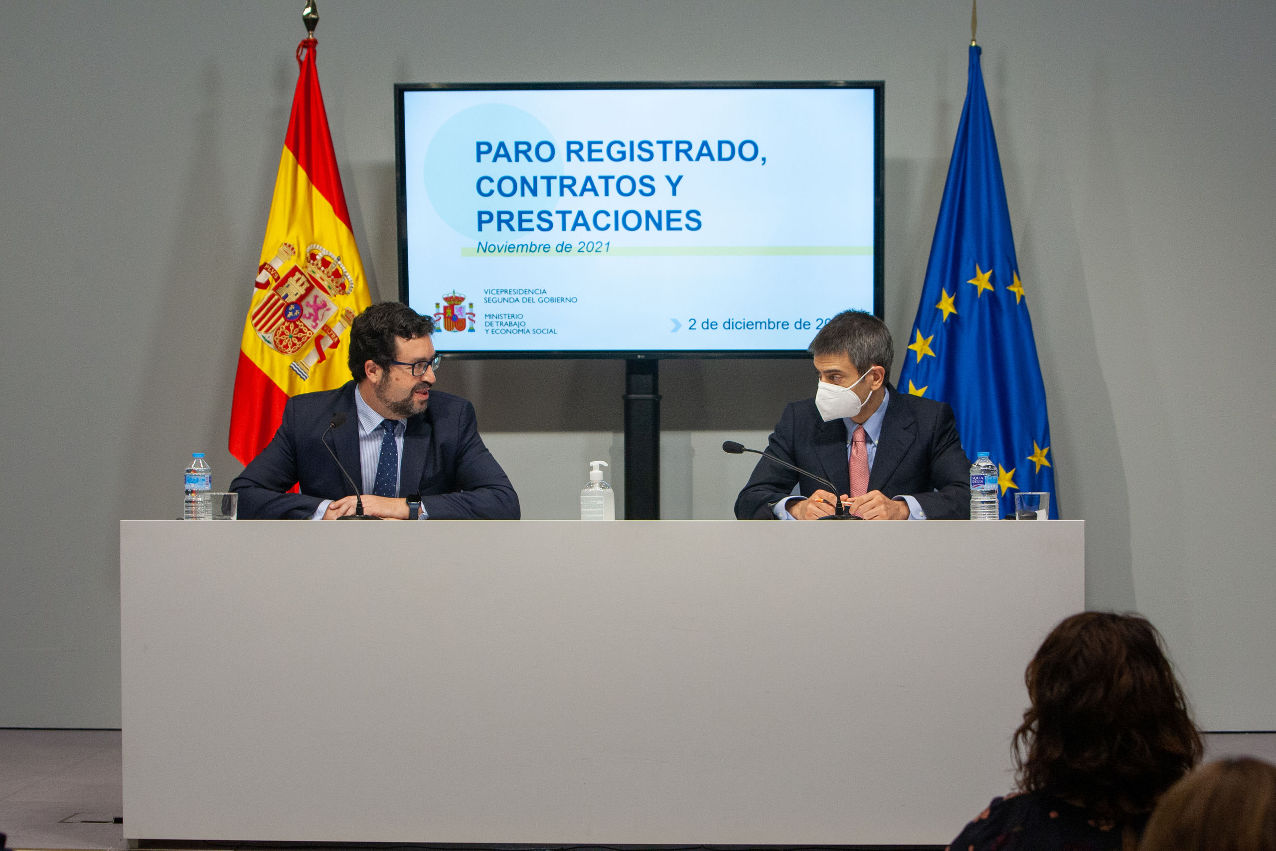 La razón es el horario de la tradicional cita, en la que el secretario de Estado de Empleo, Joaquín Pérez Rey, y el de Seguridad Social, Israel Arroyo, comentan las cifras cada mes. Ahora, los número dos de Díaz y Escrivá comparecen a las 09:00 horas en lugar de las 09:30. O lo que es lo mismo, a la vez que sus correspondientes ministerios publican los documentos de paro y afiliación.