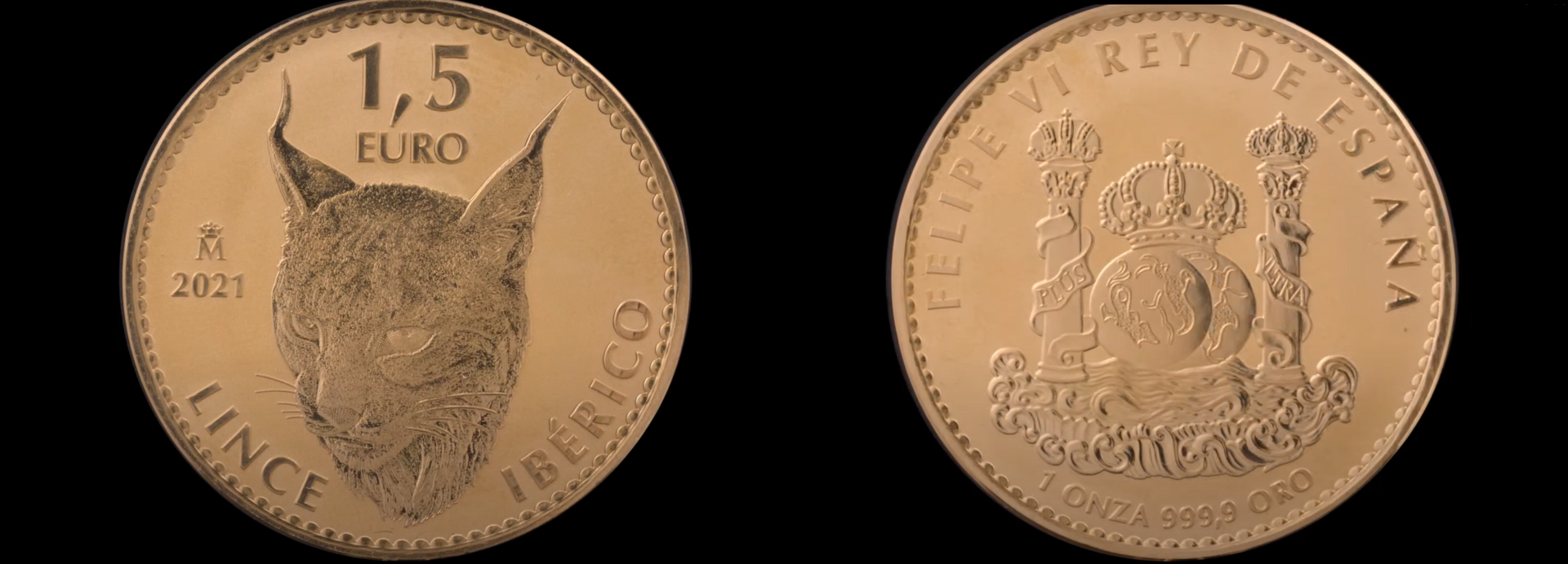 En cuanto al diseño, en una cara de la moneda se puede ver un lince ibérico y por el otro lado se aprecian dos hemisferios bajo corona real, flanqueados por las columnas de Hércules con el lema 'Plus Ultra’ y la incripción de ‘Felipe VI Rey de España’.