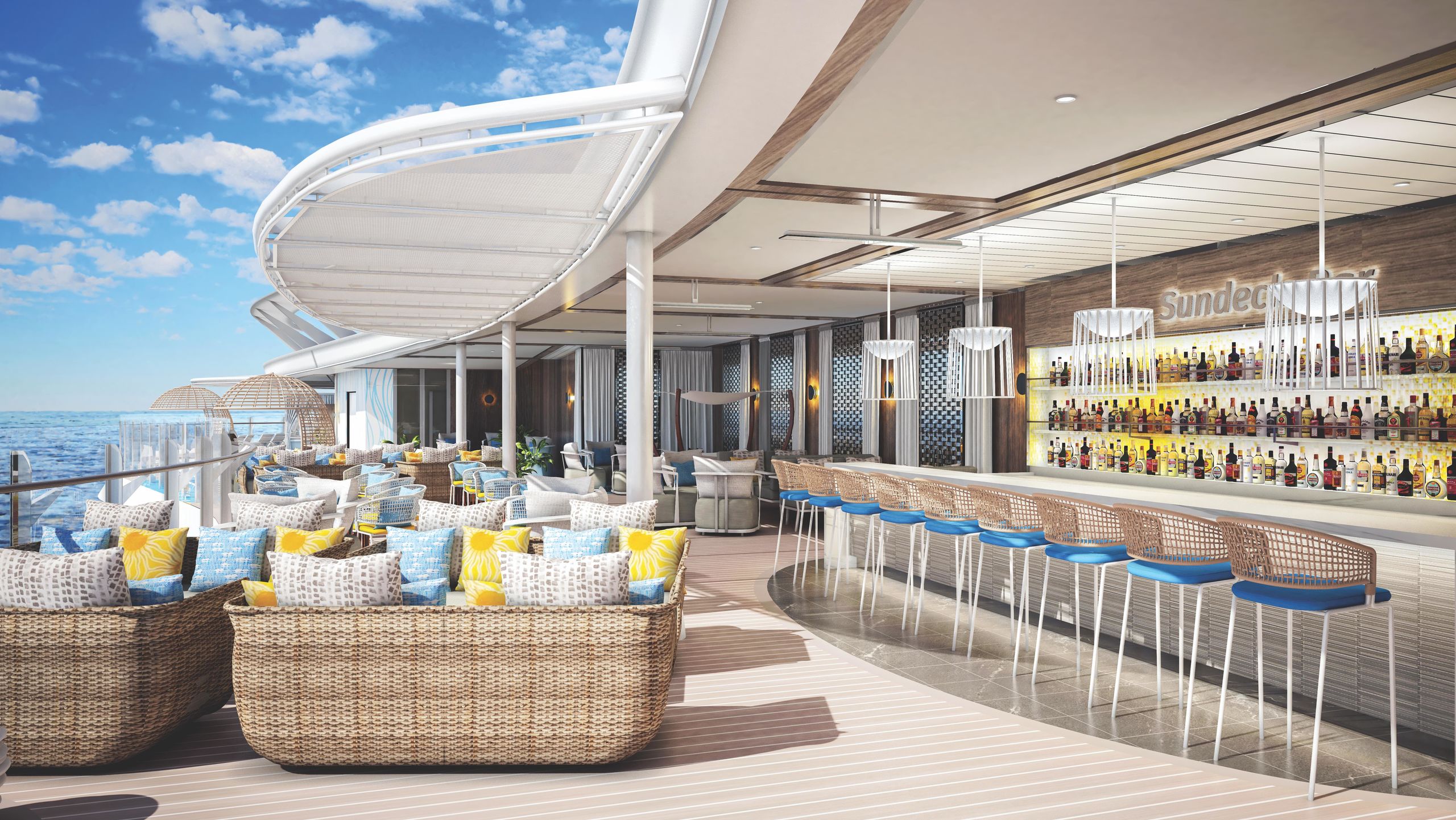 Vecindario Suite Class: el octavo vecindario se encuentra solamente en Wonder, y ofrece a los huéspedes de Royal Suite Class un Suite Sun Deck en una ubicación distinta, con una piscina profunda, bar y muchas tumbonas y rincones donde descansar, además de Coastal Kitchen, el restaurante privado y Suite Lounge.
