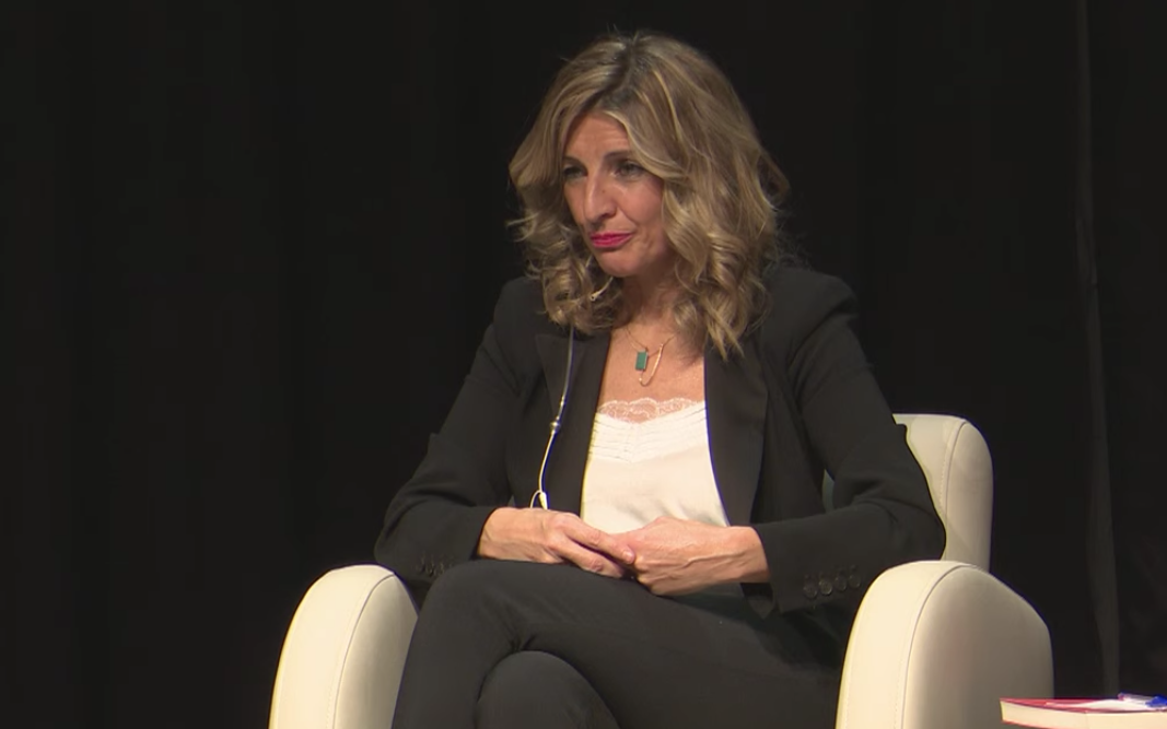 Frente al discurso de Yolanda Díaz, un espectador se levantó de su asiento y espetó lo siguiente a la ministra, que frunció el ceño con gesto visiblemente molesto: