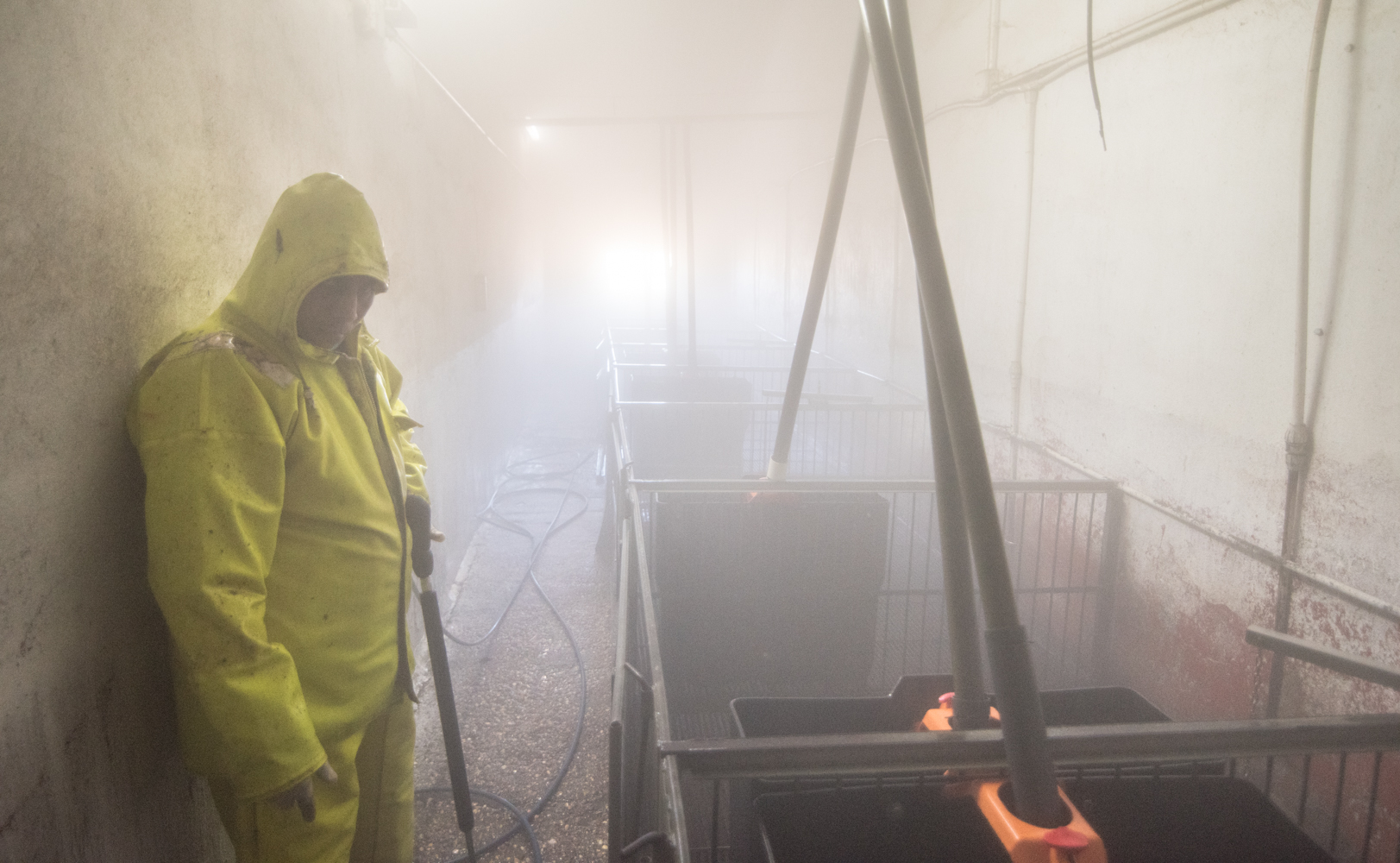 Raquel, en la celda donde se encuentran los lechones recién nacidos y sus madres.