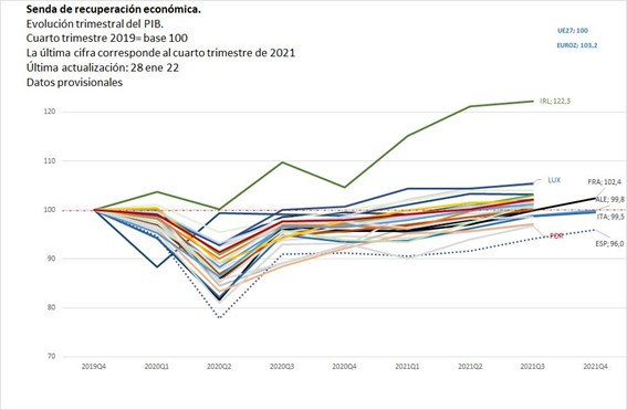 Tras la segunda mayor caída de toda la OCDE en 2020 (nuestro PIB cayó un -10,8%), España ha registrado en 2021 una tímida recuperación en 2021… del 5%. España no sólo fue el país que peor gestionó la crisis, sino que también está siendo uno de los que peor está gestionando la recuperación económica de toda Europa.