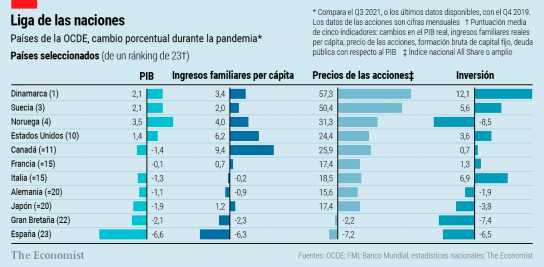 Los irlandeses son un 20% más ricos ahora que antes de la pandemia, mientras que a España ya nos supera Eslovenia en renta per capita. Nuestro país cerró 2021 como el país desarrollado con peor desempeño económico, los que más caímos en PIB y en PIB per cápita. Además, nuestro mercado, representado por nuestro indicador Ibex 35, fue el que menos creció del continente.