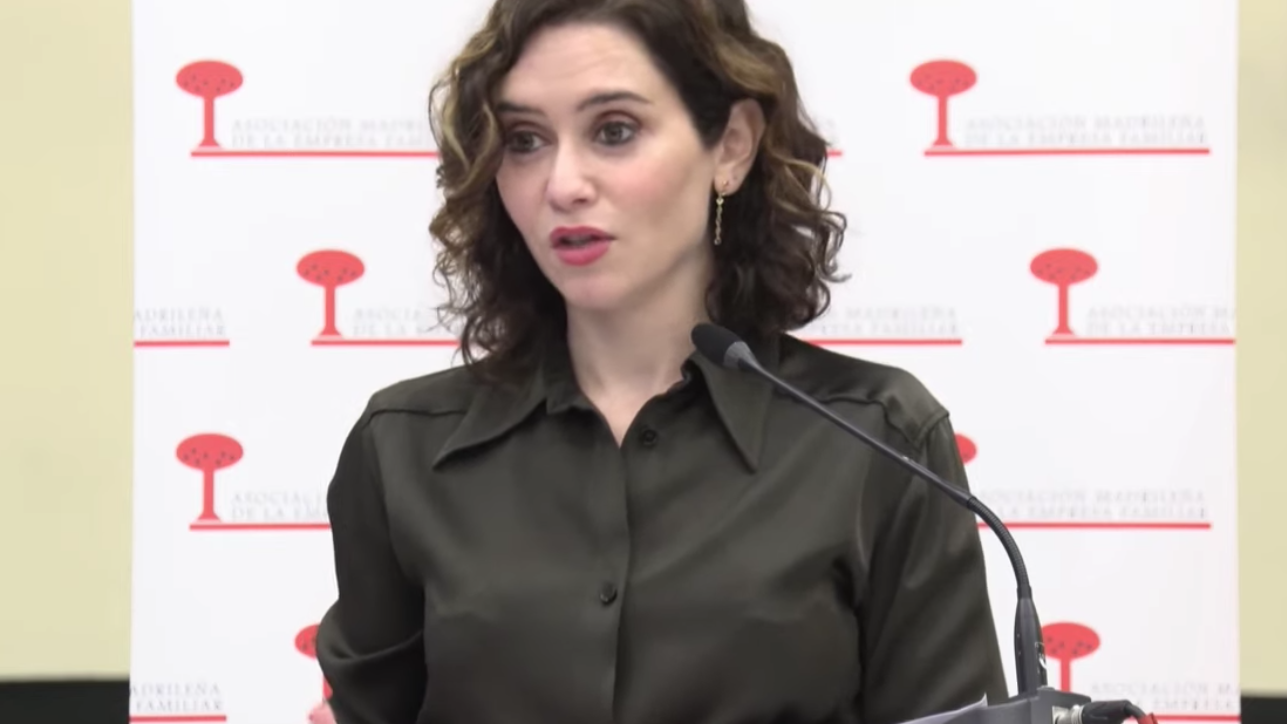 La presidenta madrileña interviene en un acto de la Asociación Madrileña de la Empresa Familiar.