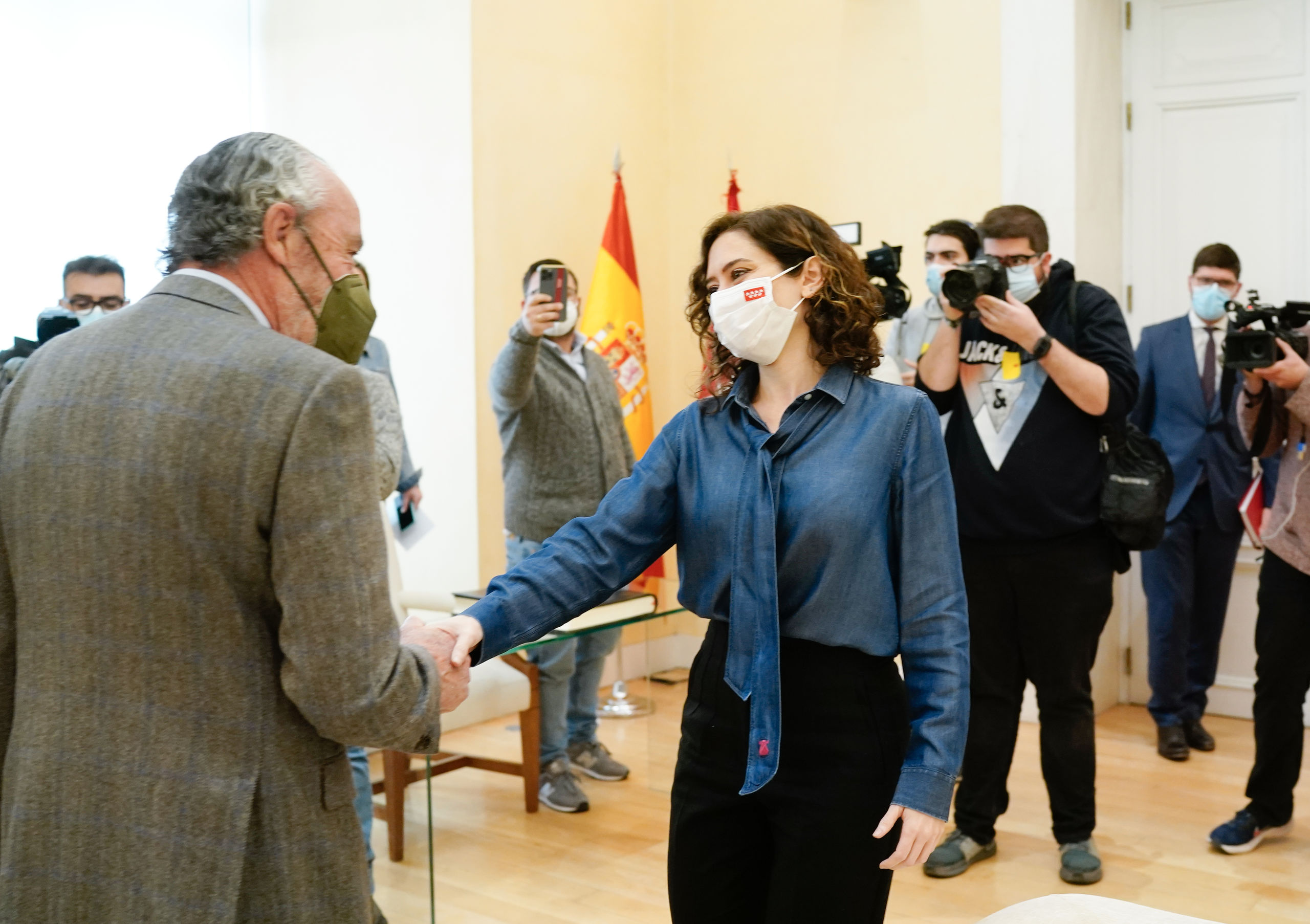 La presidenta de la Comunidad de Madrid recibió este viernes en la Real Casa de Correos a Alianza Rural, uno de los organizadores de la manifestación convocada este domingo con el lema Juntos con el campo para denunciar la situación de la agricultura y la ganadería por la subida de los precios, y ahora, la invasión de Ucrania por Rusia.