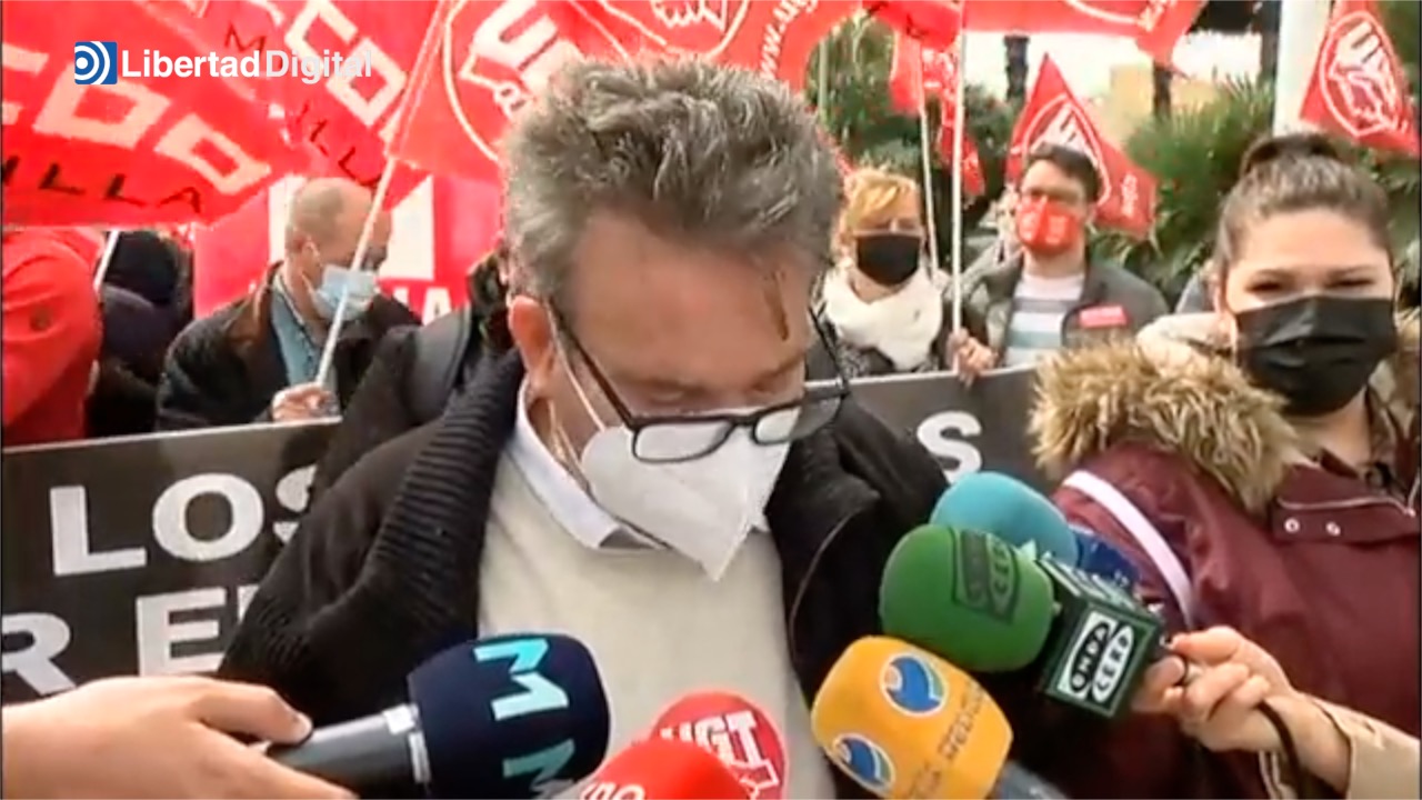 Tras la concentración en la ciudad autónoma, Francisco Díaz, secretario general de UGT Melilla, mostró su incapacidad para leer unas líneas y entre balbuceos no acierta a decir algo tan sencillo como "la población más vulnerable" o la palabra "inaplazable".