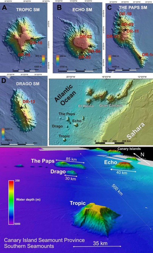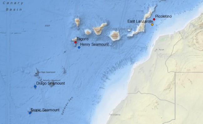 La riqueza minera canaria se concentra en varios volcanes submarinos de la cordillera que rodea las islas. El más conocido es el monte Tropic por ser también el más estudiado. Está 50 millas más allá de la que sería la Zona Económica Exclusiva española (el resto están dentro). España pidió en 2015 ante la ONU que considerara este territorio parte de la plataforma continental de las islas con el fin de extender el control español sobre las aguas y el subsuelo marino. Lo mismo hizo después Marruecos, convirtiendo este volcán en un nuevo foco de conflicto, mientras aprobaba en el parlamento una ampliación de sus límites marinos y de su Zona Económica Exclusiva.