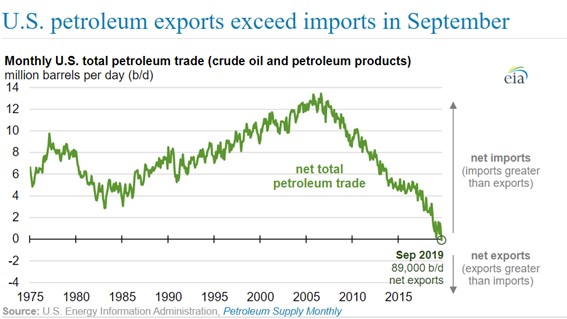 Pero el fracking lo cambió todo. Esta técnica permitió que geografías que no eran tan ricas en yacimientos petrolíferos pudieran explotar sus recursos y equilibrar el tablero geopolítico. El resultado es que Estados Unidos ha pasado de ser una economía altamente dependiente del petróleo a ser un exportador neto del oro negro en septiembre de 2019.