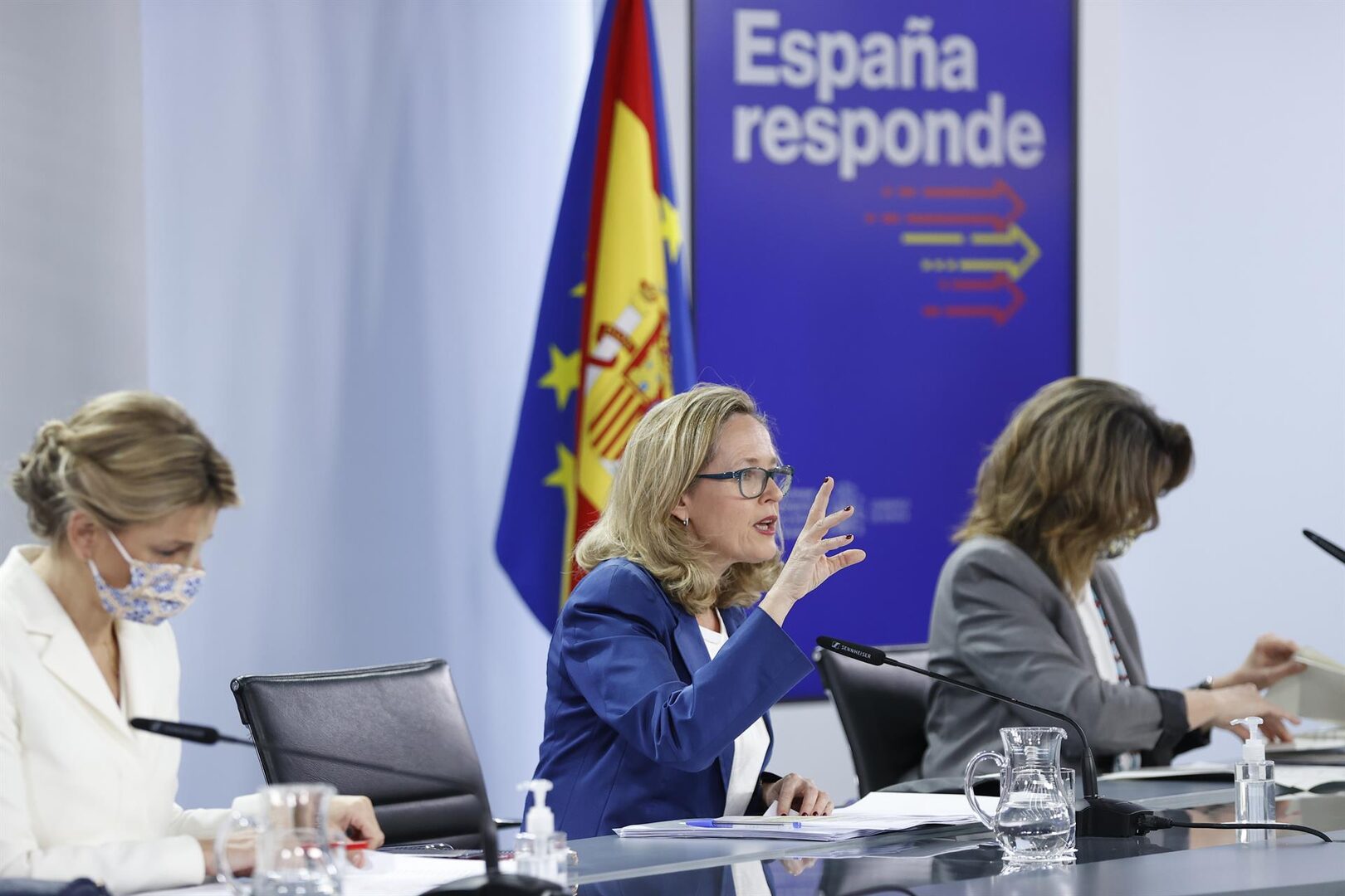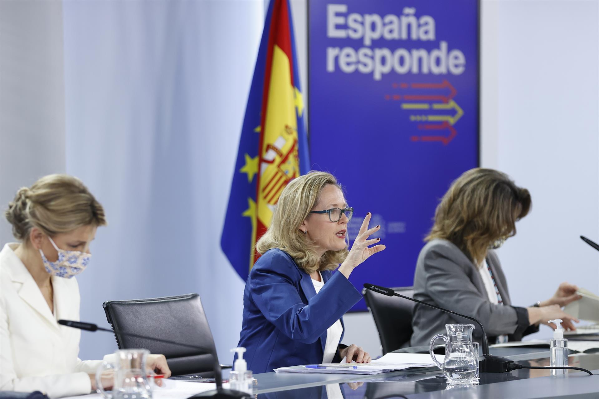 El "Plan de Choque de Respuesta a la Guerra" del Gobierno ya está aprobado en el Consejo de Ministros y entrará en vigor el 1 de abril. Las tres vicepresidentas del Gobierno -Nadia Calviño, Yolanda Díaz y Teresa Ribera- han sido las encargadas de explicar algunos detalles del real decreto-ley con el que el Ejecutivo va a dar luz verde a una lluvia de 16.000 millones de euros de dinero público. Esta cuantía se distribuirá en forma de subvenciones directas (6.000 millones) y con los controvertidos créditos ICO (10.000 millones) impulsados en la pandemia del coronavirus con aval del Estado.