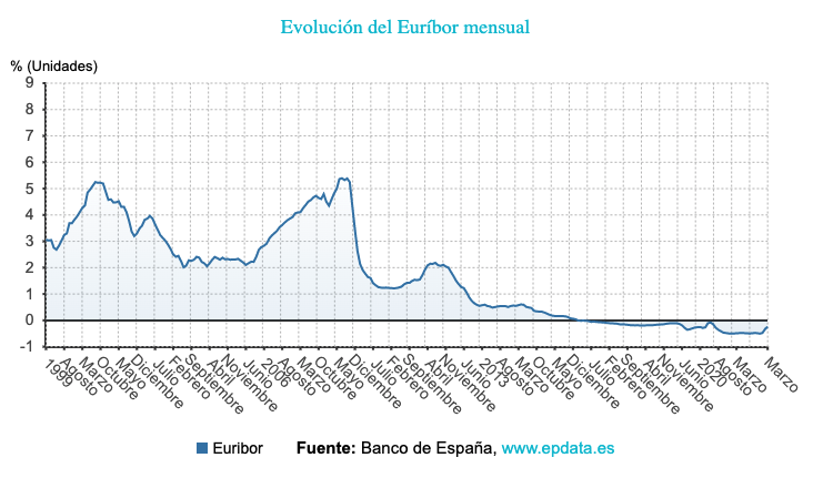 Los bancos están trabajando con horizontes de tipos de interés para el euríbor de alrededor del 0,4% o del 0,5% para este año y del 0,8%, 0,9% para el que viene. Lo que ya implica una importante subida de tipos de interés para aquellos que tienen contratada su hipoteca a tipo variable. El consenso habla de un euríbor en positivo ya este 2022.