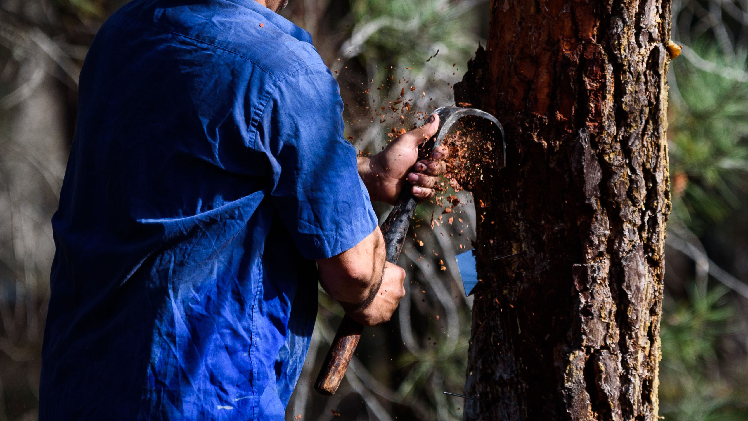 En el mes de abril y una vez preparados todos los árboles, el resinero comienza a dar las picas, entendiendo por pica cada una de las incisiones que se realizan en el tronco del árbol.