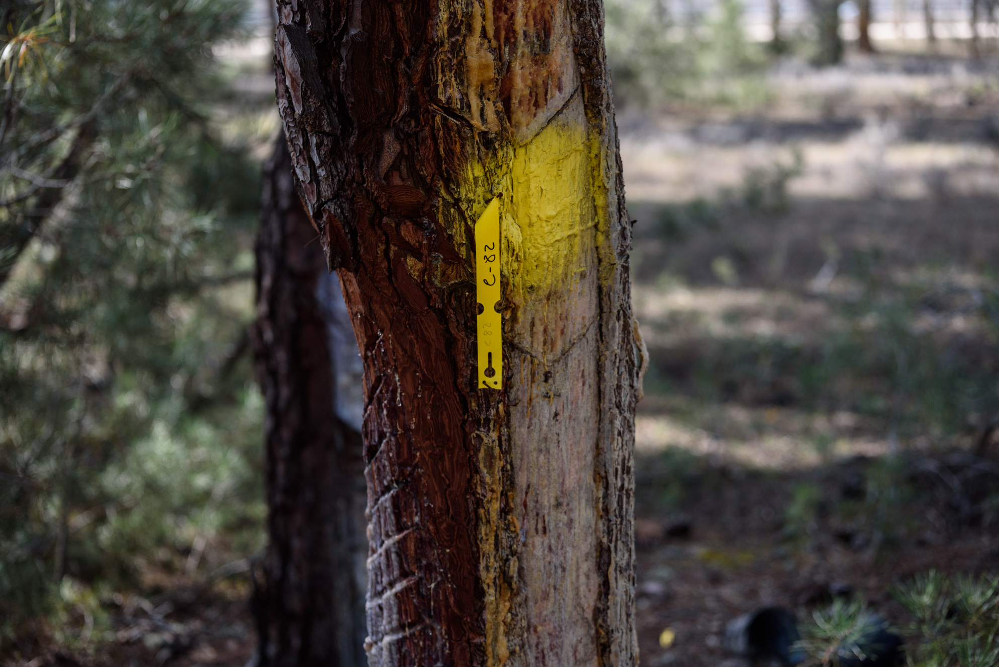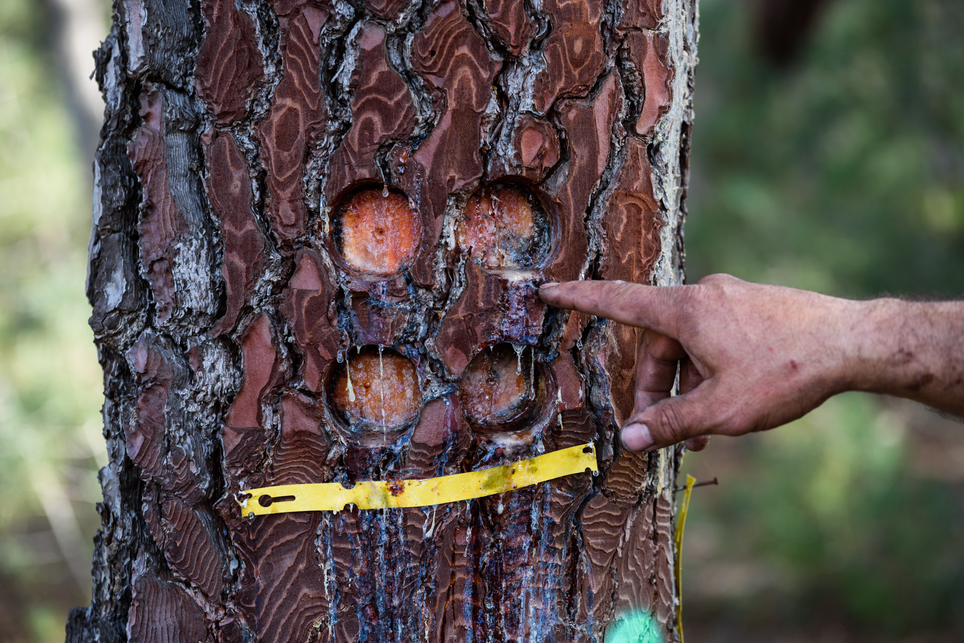 A los pinos se les marca con diferentes clasificaciones y datos en función del proceso y los años de producción de resina.