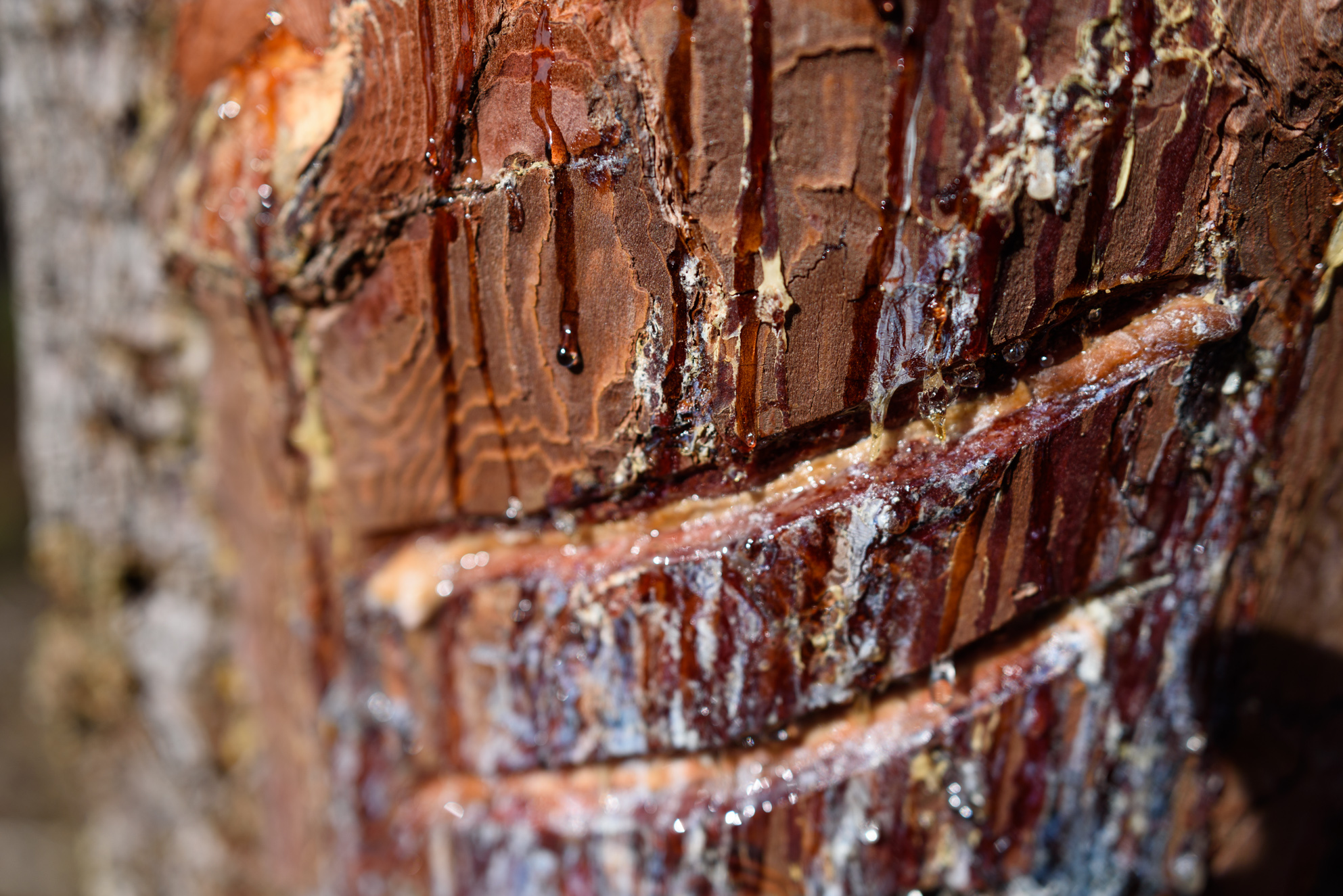 Gotas de resina, el oro líquido que segregan los pinos españoles.