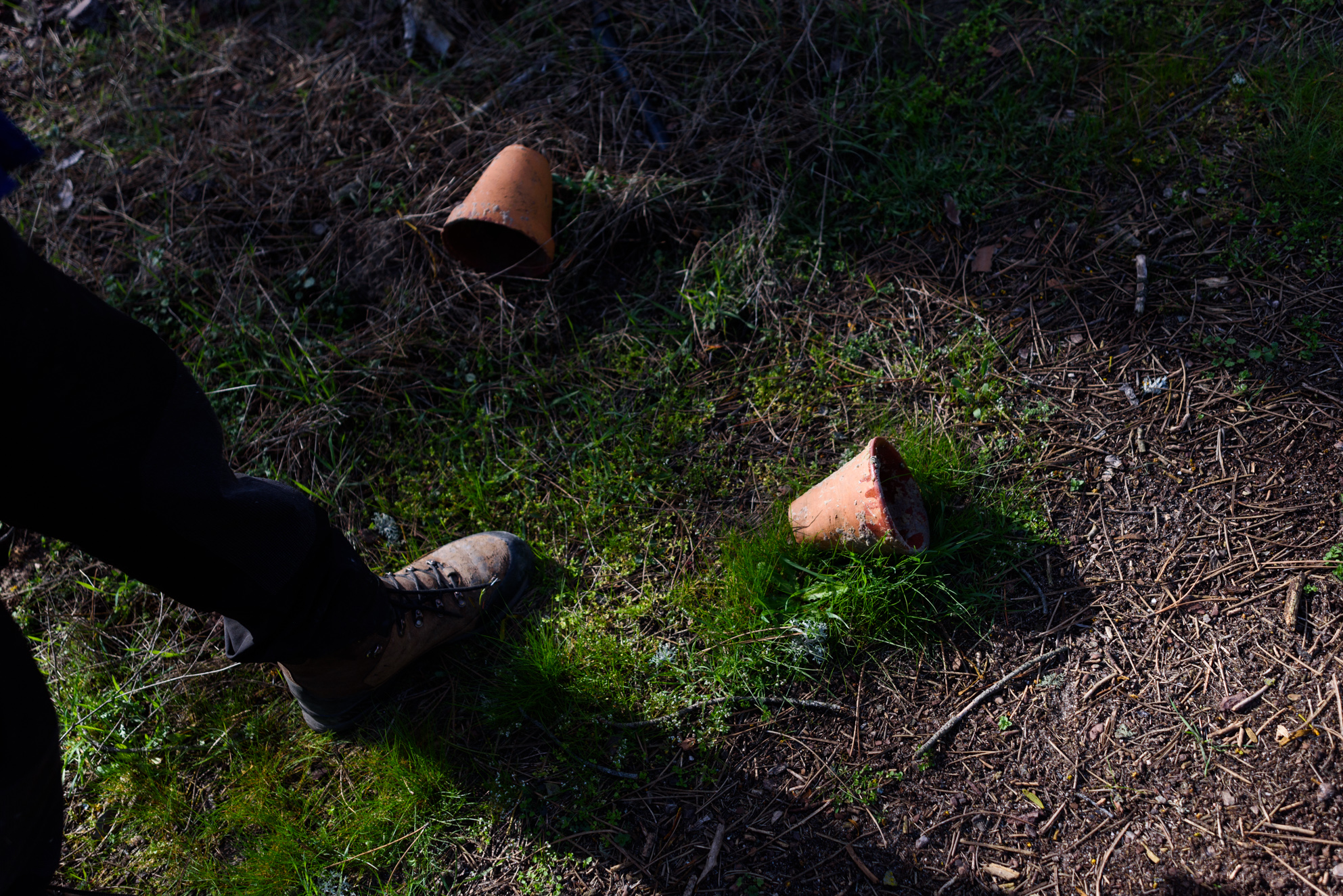 Varios de los antiguos recipientes de cerámica que se utilizaban para recoger la resina. Actualmente se trabaja con plástico.