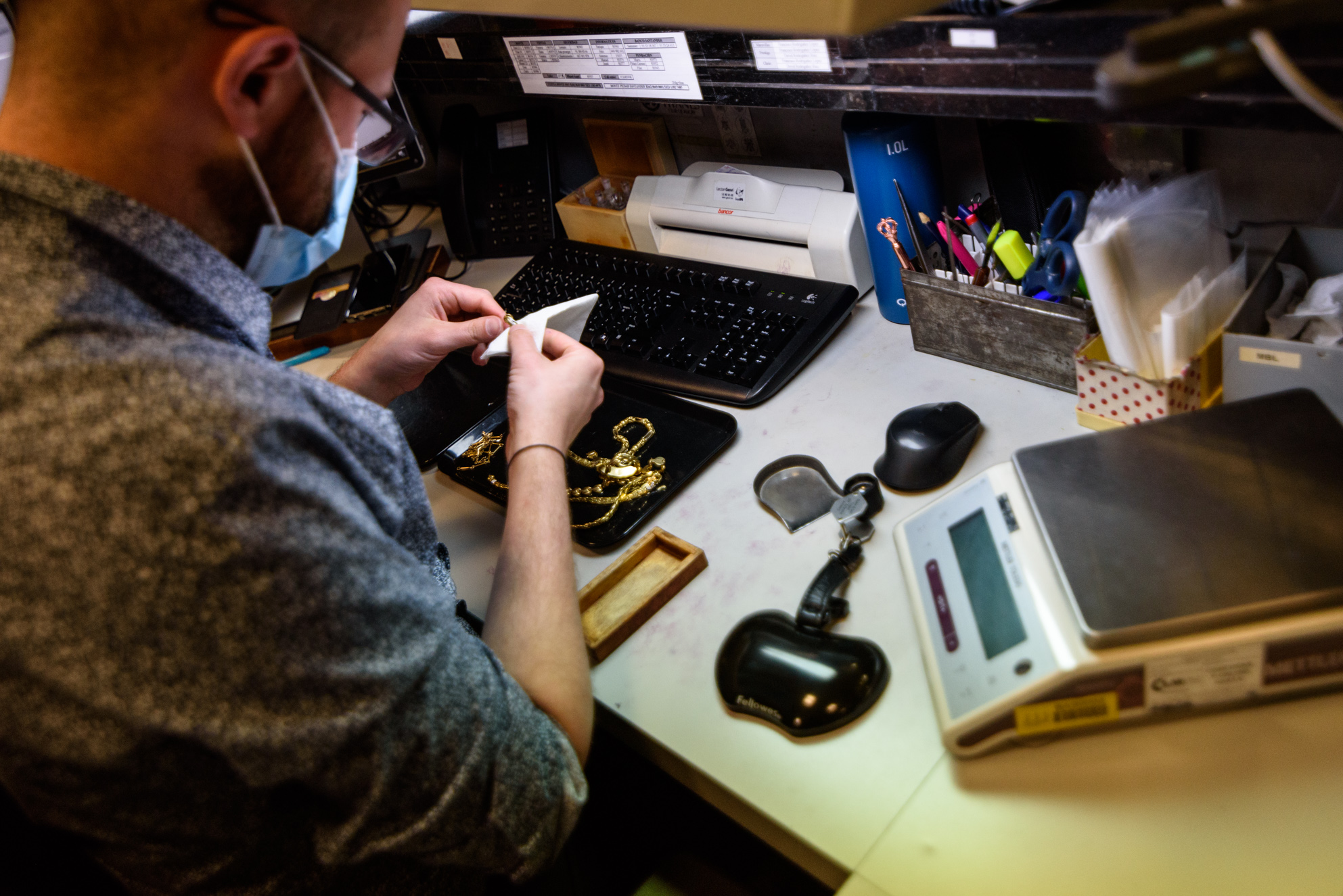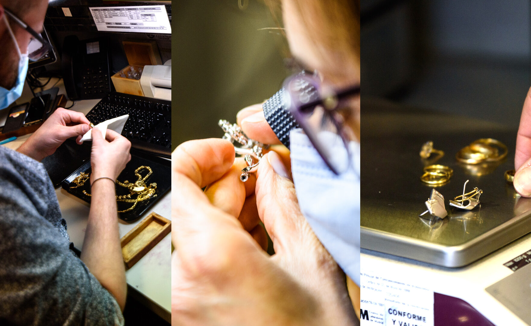 Al otro lado del mostrador, 17 tasadores trabajan sin descanso. Una joven entrega un puñado de anillos de oro, que van a parar a una pequeña báscula. "Aquí tienen la garantía de que están bien calibradas y de que nadie les va a estafar", explica en contraposición a los múltiples negocios de Compro Oro casi clandestinos que salpican numerosos edificios del centro de Madrid.