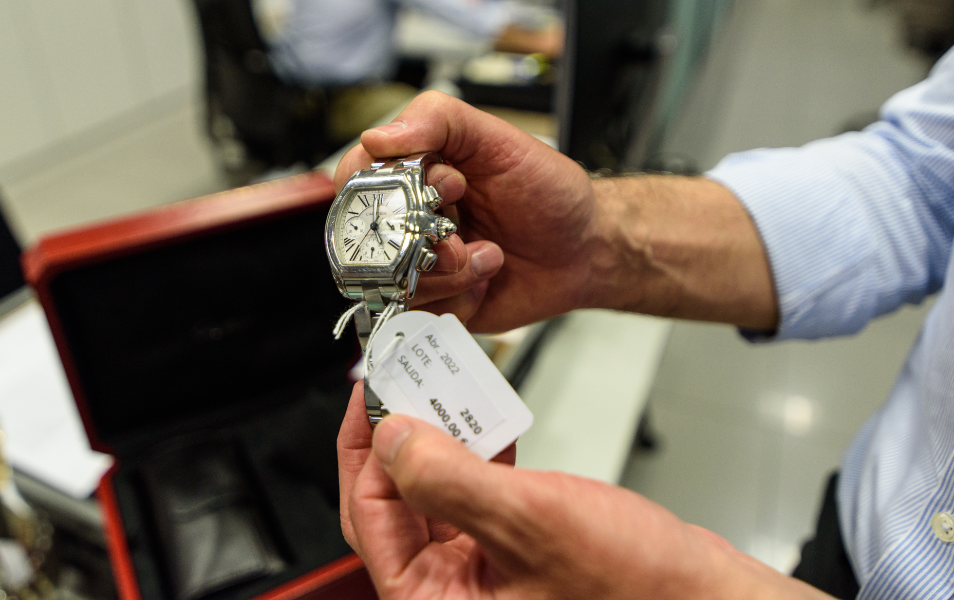 "Nosotros venimos porque nos han dicho que aquí podemos conseguir joyas magníficas a muy buen precio", nos cuenta una pareja de mediana edad mientras sostienen el folleto de la próxima cita. En él, se publicitan desde un colgante con forma de garra con un precio de salida de unos 320 euros, hasta unos pendientes de oro blanco y brillantes por valor de 24.000. Detrás del mostrador, podemos ver las bandejas con todas las joyas que se adjudicaron en la última subasta y que ya están listas para ser enviadas a sus compradores. Entre ellas, un Cartier valorado en 4.000 euros.