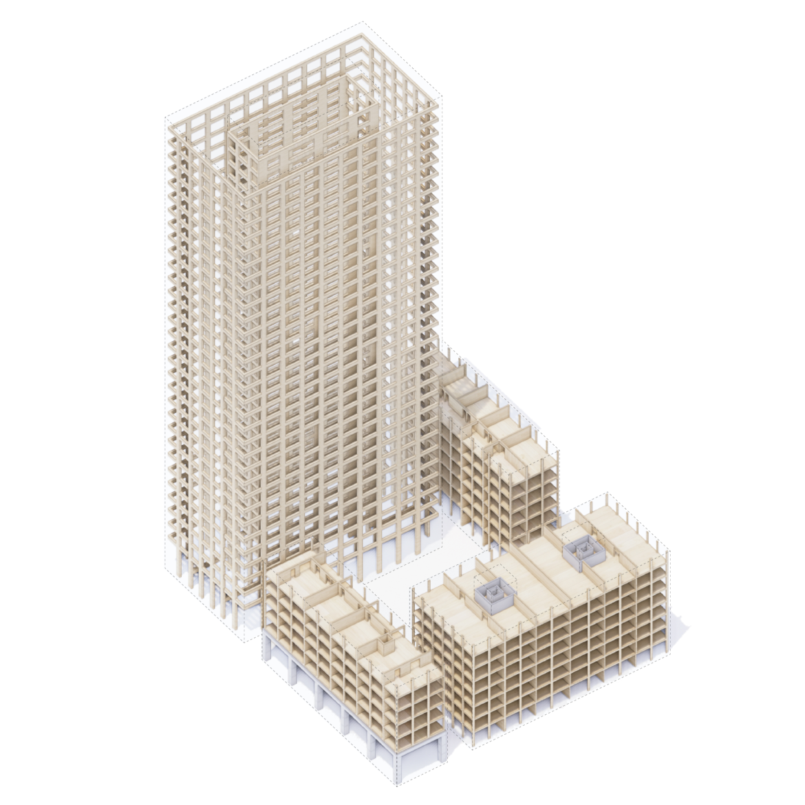 la Universidad Pública suiza de Investigación ETH Zurich, que fue la encargada de desarrollar el nuevo sistema de construcción de madera utilizado para alcanzar los 100 metros de altura sin hormigón.