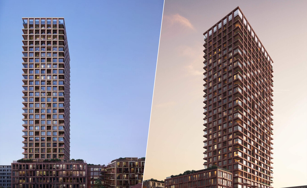 La torre de 100 metros de altura, Rocket&Tigerli, está diseñada para crear un marco para un barrio que ofrecerá viviendas modernas y de alta calidad con la máxima entrada de luz natural.
