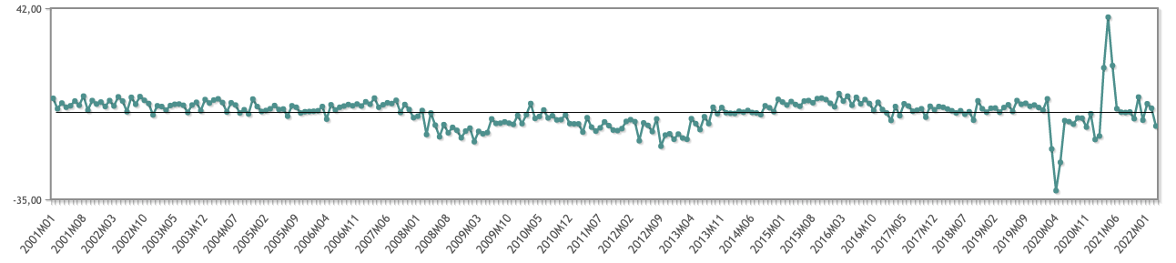 Otro de los indicadores que no quiere mirar el Ejecutivo es el Índice de Producción industrial, que mide la evolución de la actividad productiva en las ramas industriales (excluida la construcción) excluyendo la influencia de la evolución de precios, vemos que se encuentra en negativo. La variación mensual del IPI es del -1,8% si se eliminan los efectos estacionales y de calendario. Una tasa 2,7 puntos inferior a la observa da en febrero.