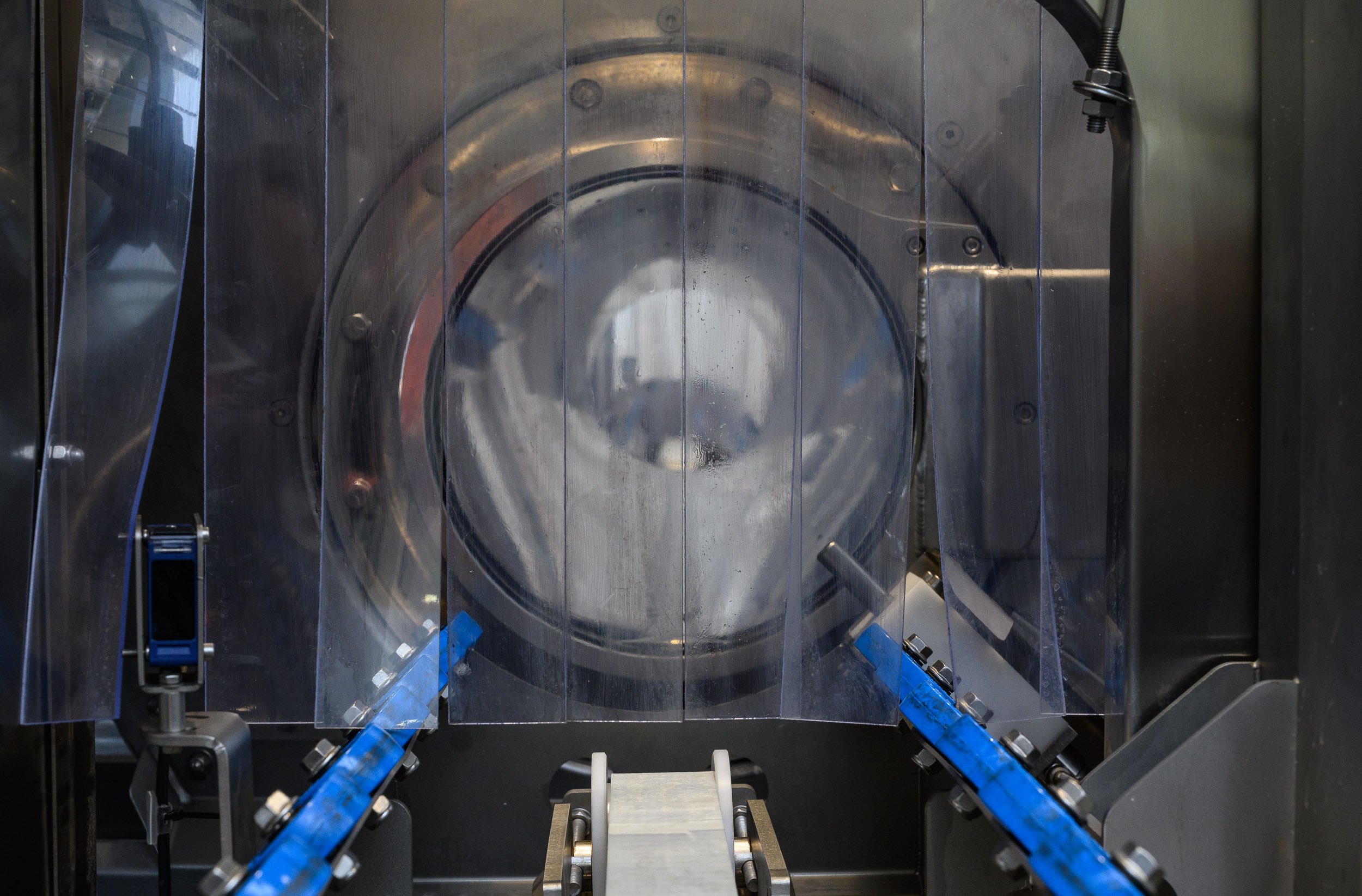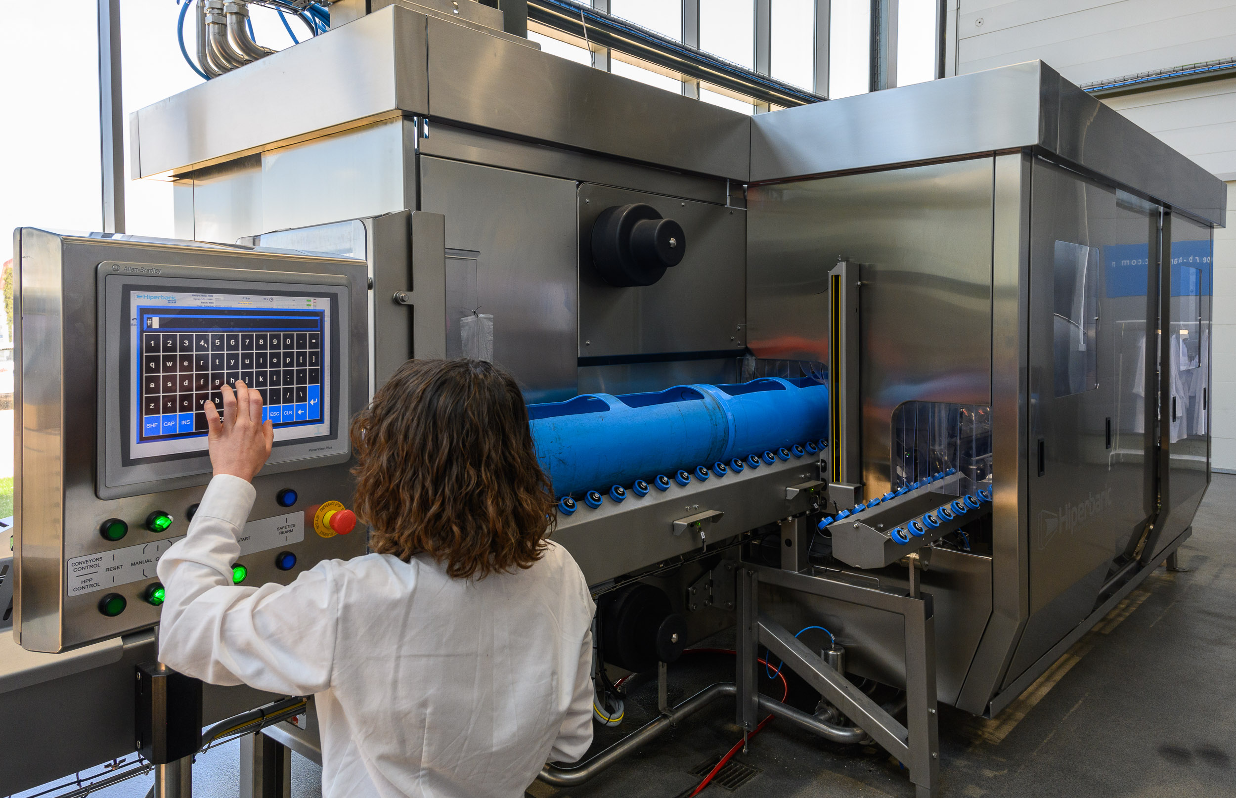 Una operaria maneja la máquina para dar inicio al proceso de altas presiones, que sólo dura unos minutos.