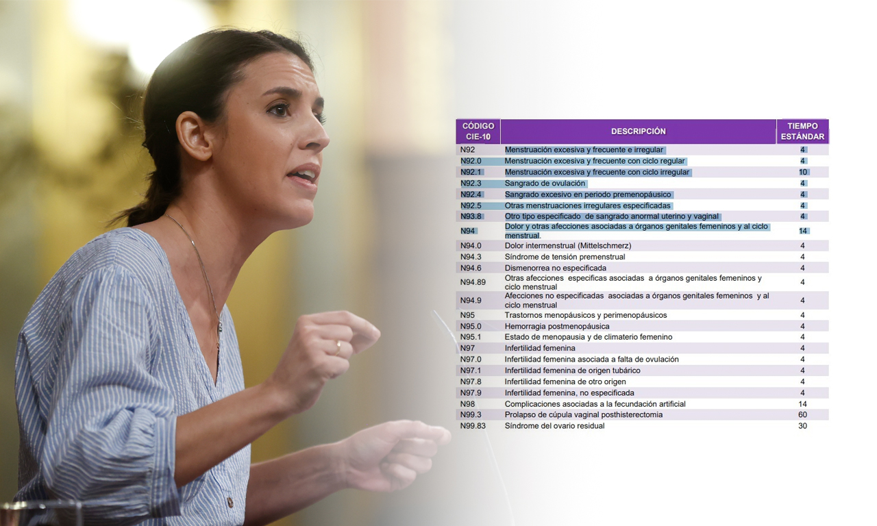 Desde la menstruación excesiva hasta la menstruación irregular pasando por todo tipo de reglas dolorosas, como la dismenorrea no especificada (dolor uterino en el momento de la menstruación). Todas las posibilidades estaban ya consideradas por la Seguridad Social y servían de referencia a los médicos. Por tanto, Montero no introduce ninguna novedad en este punto. También quedan en evidencia sus afirmaciones de que los problemas menstruales estaban invisibilizados a la hora de otorgar bajas.
