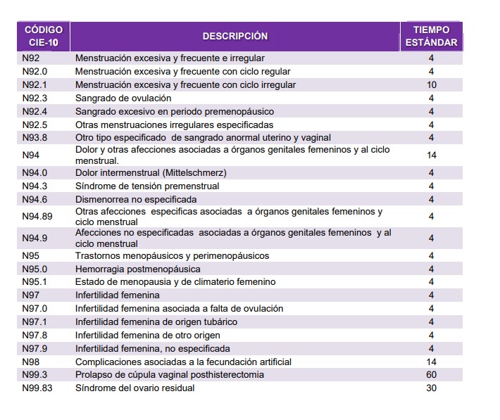 Además, este manual otorga a los profesionales de la sanidad el "tiempo estándar" para cada baja dependiendo de cada dolencia. En la mayoría de casos, la incapacidad suele durar 4 días, aunque cuando una mujer sufre "dolor y otras afecciones específicas asociadas a órganos genitales femeninos y al ciclo menstrual" la baja "estándar" llega hasta los 14 días.