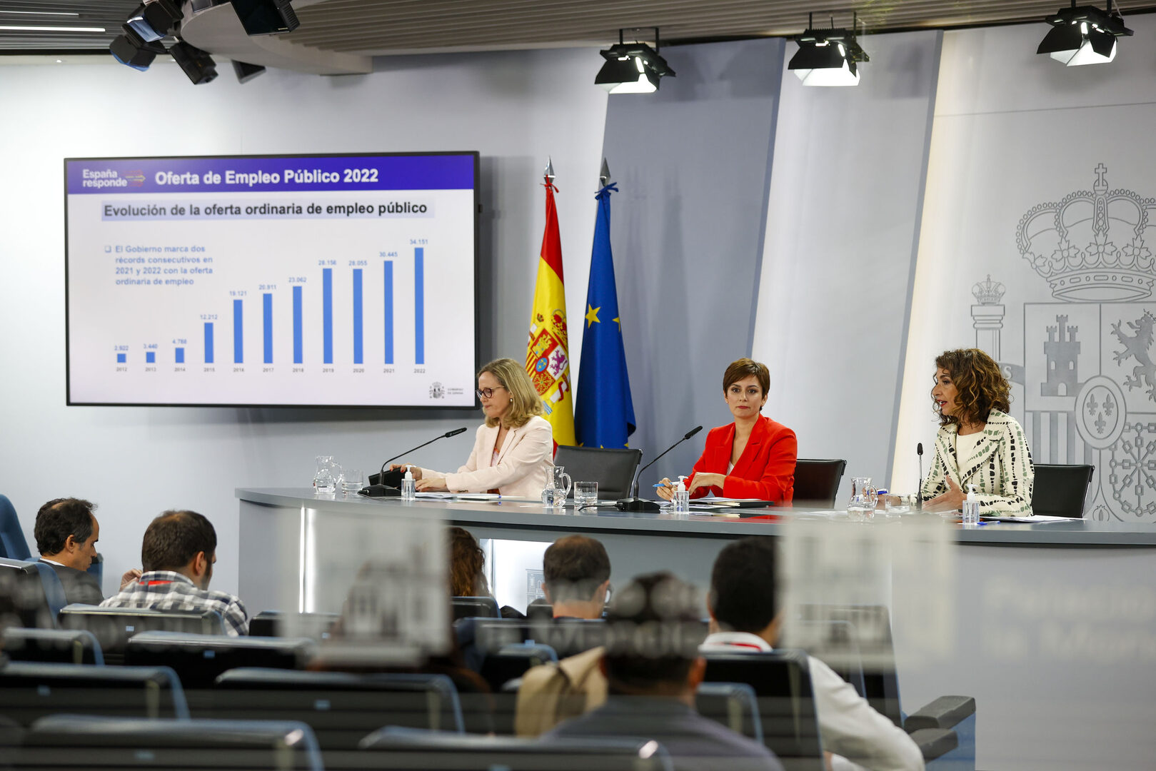 "Es un día muy importante para todos los que creemos en lo público" celebró la ministra de Hacienda y Función Pública, María Jesús Montero, en la rueda de prensa posterior al Consejo de Ministros de ayer martes. Montero prometió "más y mejores servicios para toda la ciudadanía" con esta nueva convocatoria. "Es la mayor oferta de la historia. Va dentro de nuestro ADN" siguió aplaudiendo la ministra.