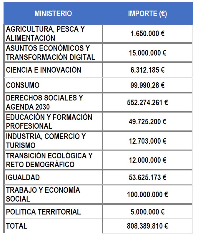 Paralelamente, el Gobierno ha anunciado este martes un nuevo PERTE dirigido a la economía social y que tendrá una dotación de 808 millones de euros.