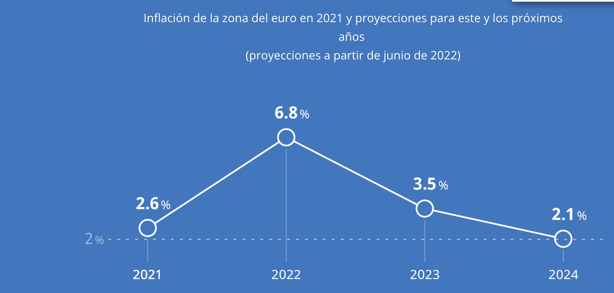 No hay que olvidar que el objetivo único del BCE ha sido mantener la inflación en el Viejo Continente "cerca, pero por debajo, del 2%". Sin embargo, con la pandemia del coronavirus, Lagarde abrió la veda a subidas puntuales por encima del 2%, que se han convertido en permanentes. A finales de 2022, la inflación casi cuadruplicará la propia línea roja del BCE.