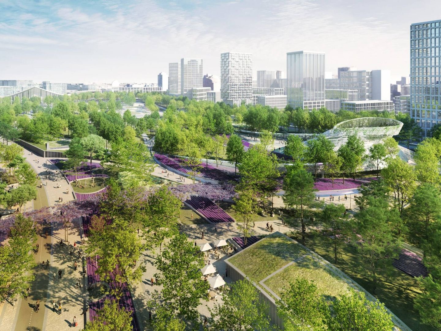 El Parque Central estará integrado dentro del gran sistema de zonas verdes de la ciudad formado por el Bosque Metropolitano, el Arco Verde y la propia red de parques de Madrid Nuevo Norte.